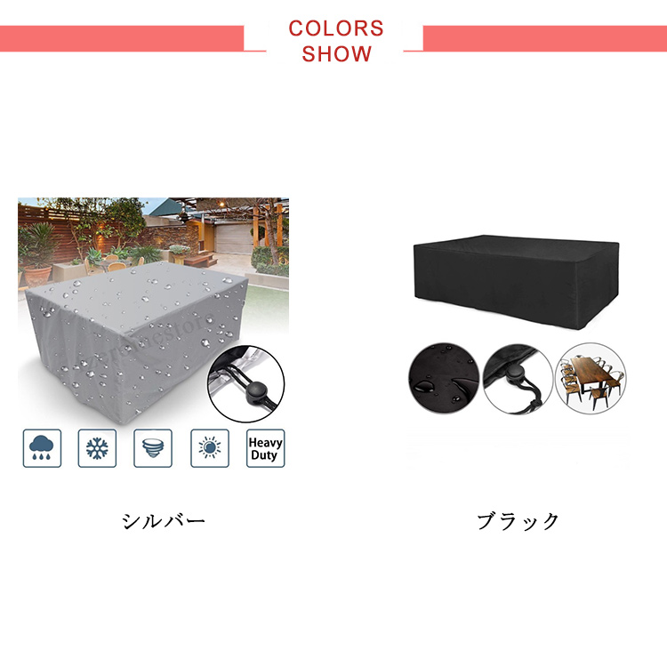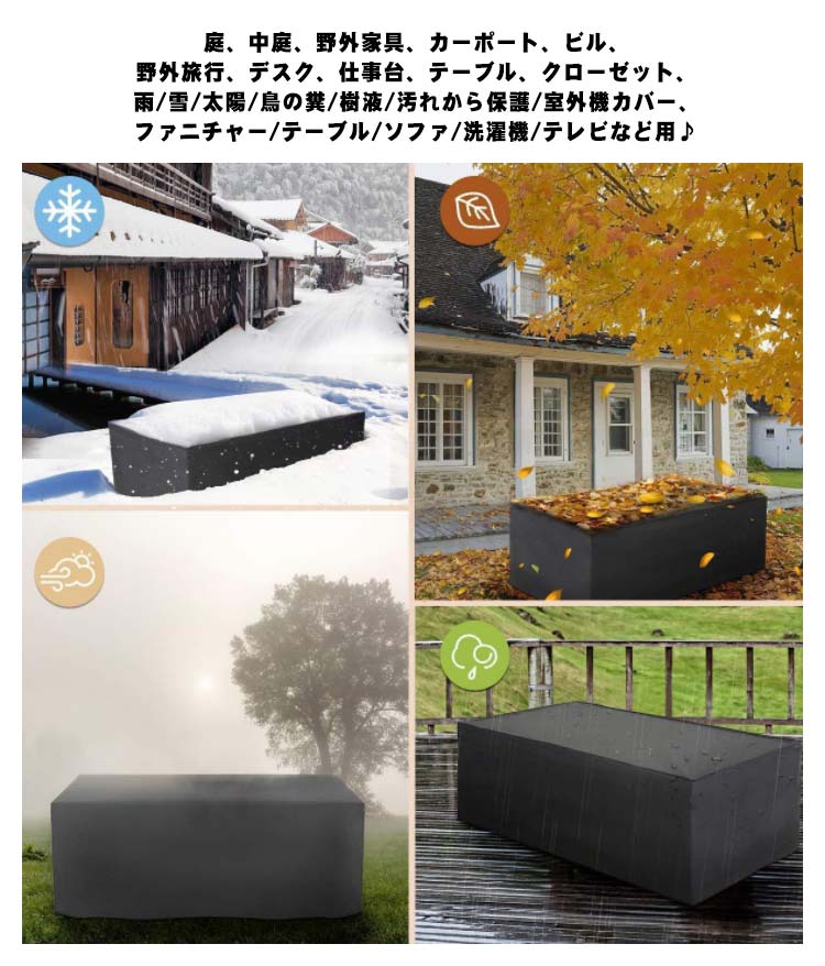 | 晴、雨、雪の日にあなたの家具を保護することができるカバーです? 水?紫外線?汚れから家具を守る!抜群のUVカット生地で強い日差しも家具を守ります。お部屋のUV対策にもおススメ。 紐付きで下部を締めれるので、風があっても安心。 庭、中庭、野外家具、カーポート、ビル、野外旅行、デスク、仕事台、テーブル、クローゼット、雨/雪/太陽/鳥の糞/樹液/汚れから保護/室外機カバー、ファニチャー/テーブル/ソファ/洗濯機/テレビなど用? | |