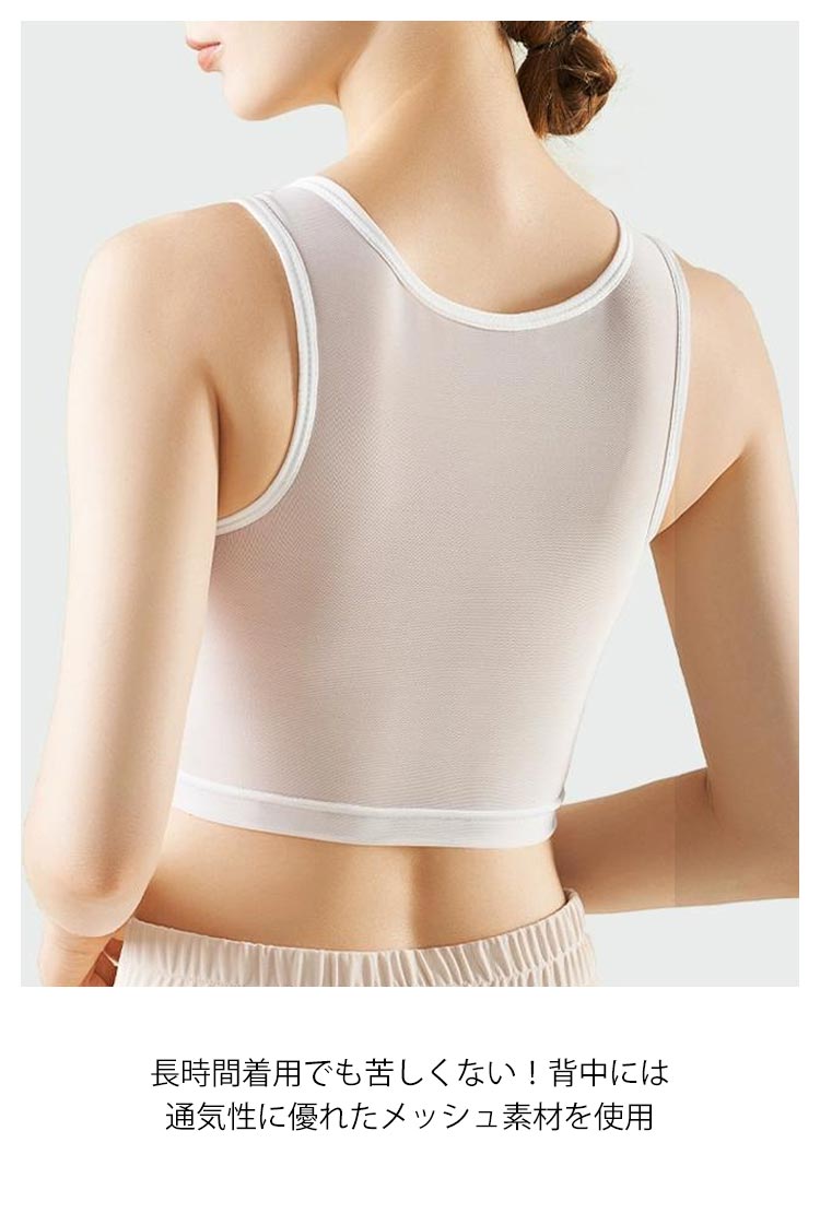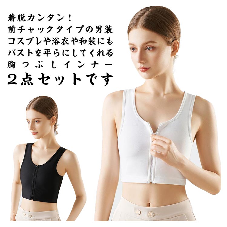 着脱カンタン!前チャックタイプの男装コスプレや浴衣や和装にも、バストを平らにしてくれる胸つぶしインナー2点セットです。長時間着用でも苦しくない!背中には通気性に優れたメッシュ素材を使用。フラットな生地で着用感も良く、胸をしっかりと覆ってスッキリ収納してくれます。さらに、肩紐が広めのタンクトップタイプなので、スポーツ時にぴったりです。フロントファスナー仕様ので使い勝手が良いです。バストをペタっとフラットにメイクするから、ボリュームが気になる方や、浴衣やお着物の下着として、コスプレ時の胸つぶしとしてなど、コーディネートを格上げしてくれる1枚です。