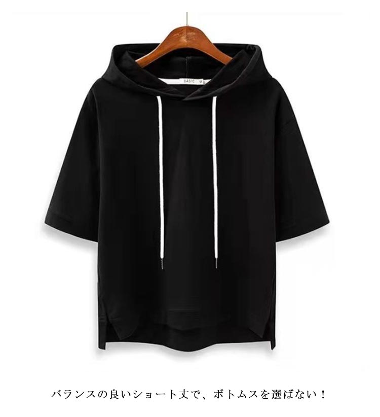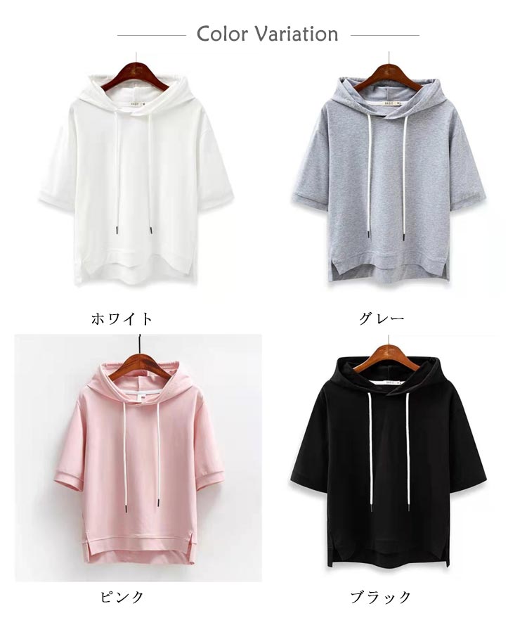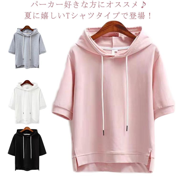 パーカー Tシャツ カットソー レディース 半袖 パーカー フーディTシャツ 無地 プルオーバー パーカー フード付きtシャツ 夏パーカー 春夏 トップス 前後差 ゆったり 無地 シンプル カジュアル おしゃれ ルームウエア 部屋着 送料無料
