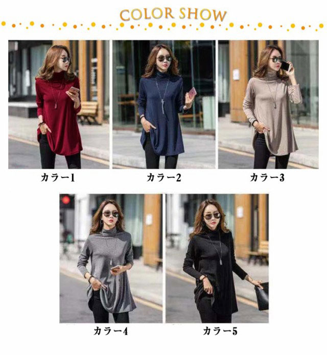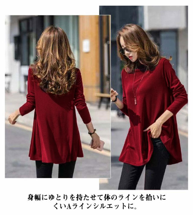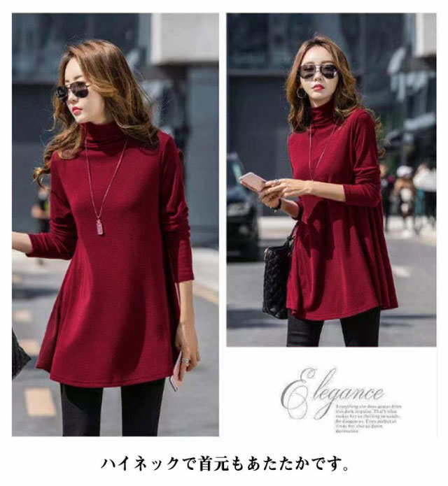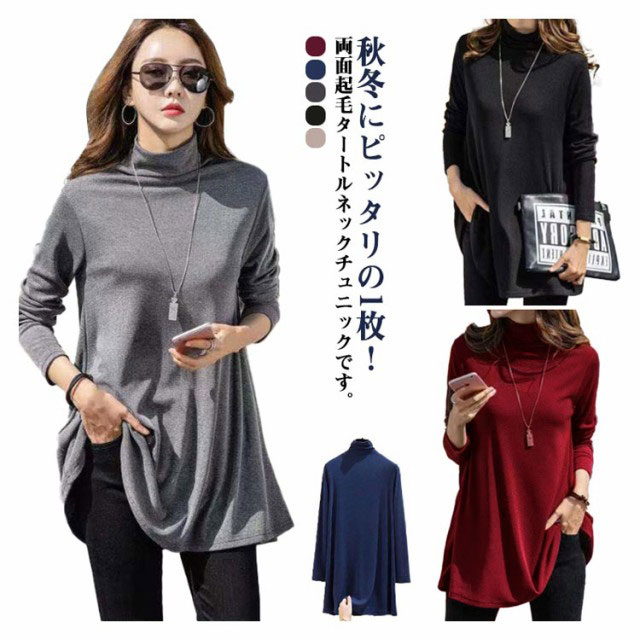 両面起毛 チュニック 起毛 レディース タートルネック ハイネック カットソー ロングTシャツ ロング丈 tシャツ 長袖 防寒 あったか 暖かい トップス インナー 着痩せ Aライン トレーナー 秋 冬 重ね着 シンプル かわいい 通勤 おしゃれ S M L XL 2XL 3XL