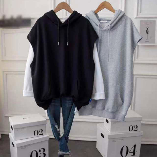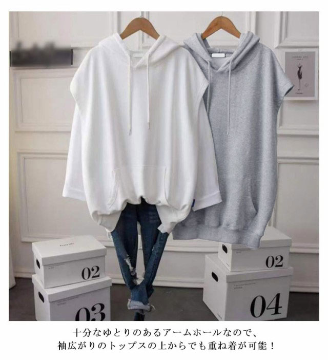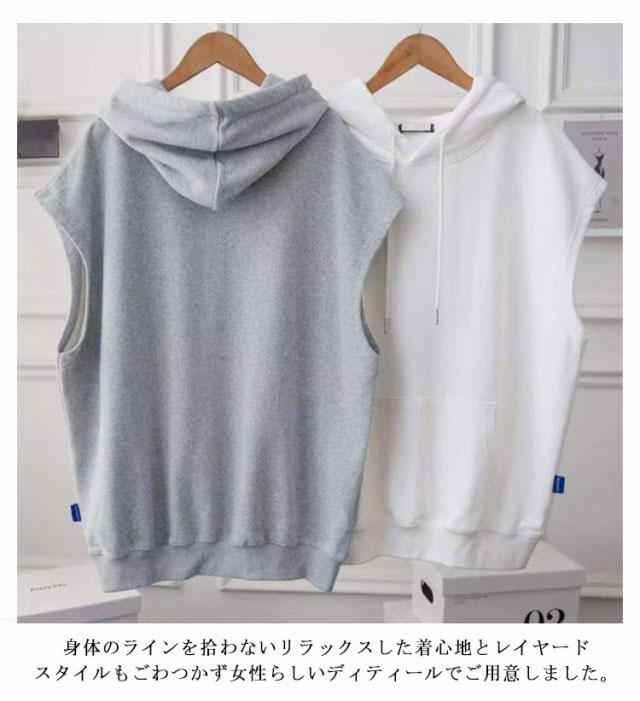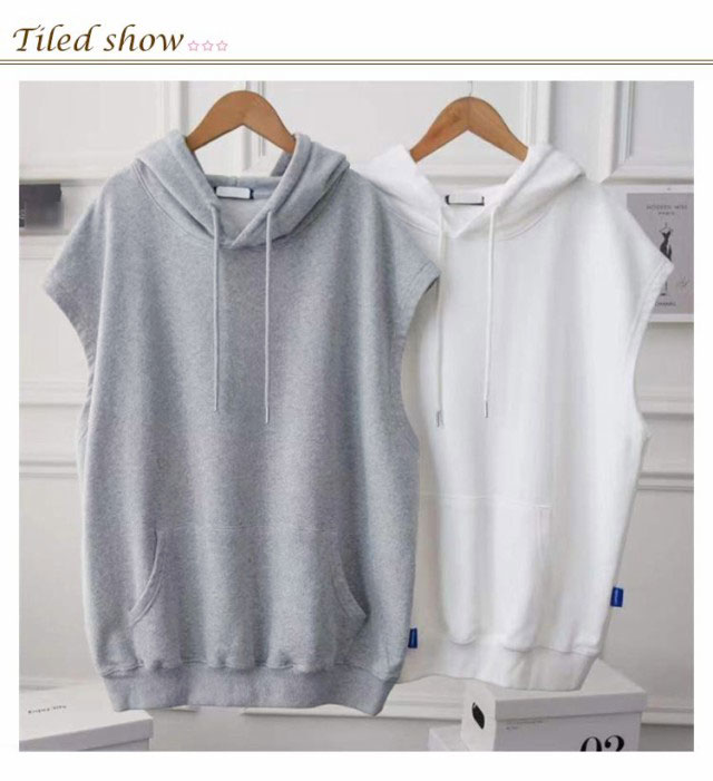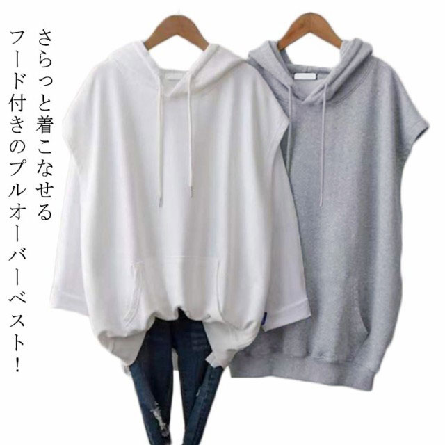 ベスト スウェット ジレ フレンチスリーブ トップス レディース プルオーバー パーカーベスト おしゃれ フード付き スエット ノースリーブ 袖なし ポケットあり 大きいサイズ カジュアル 春 夏