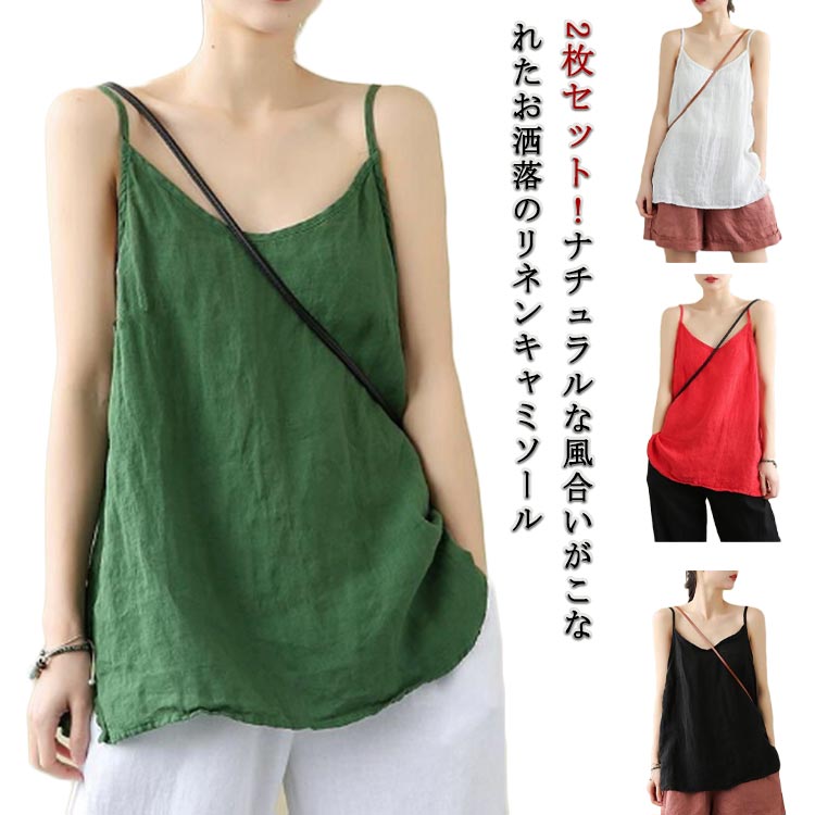 綿麻 キャミソール ナチュラル レディース レイヤード 2枚セット リネンキャミソール インナー 夏 さらさら キャミソール 綿 麻 インナー トップス 肌着 リラックス 吸湿 通気性 快適 下着 涼しいシンプル 送料無料