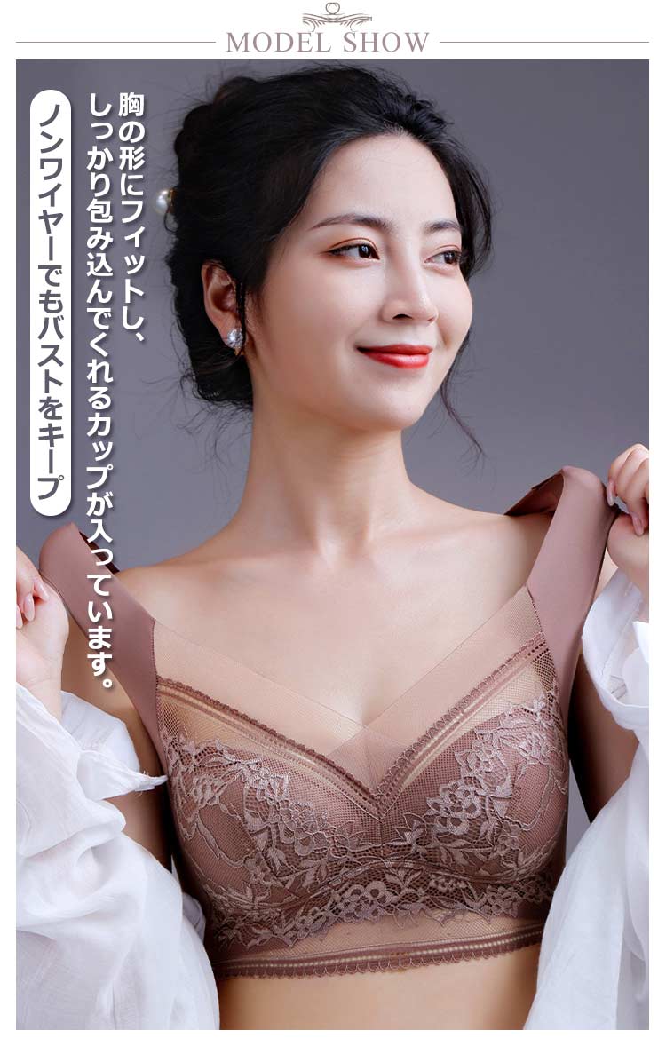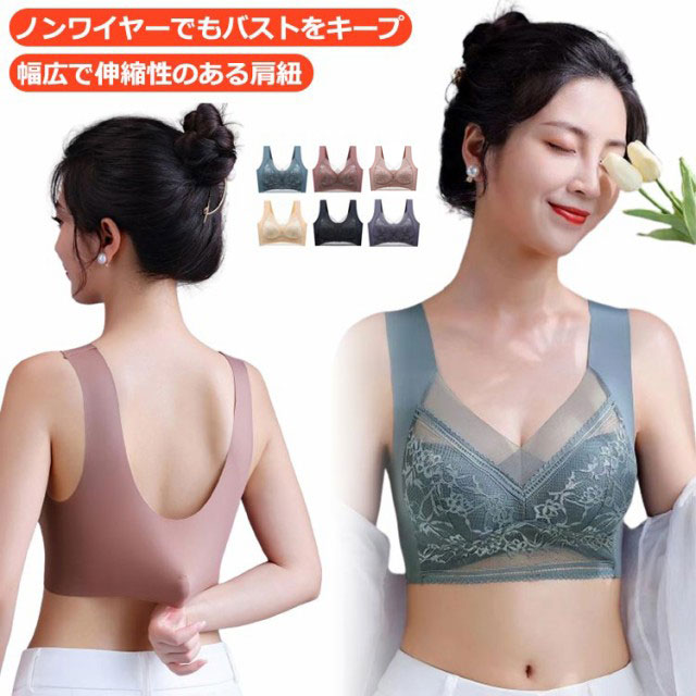 【ノンワイヤーでもバストをキープ】胸の形にフィットし、しっかり包み込んでくれるカップが入っています。【すっきりとした上半身に】ブラジャー着用時に気になる、脇にできる段差や胸元の段差をすっきり収納してくれます。【幅広で伸縮性のある肩紐】幅広なので滑りにくく、上に着るものに響かないシームレスな肩紐。太目仕様なので、肩への食い込みも軽減されます。【デザイン性と快適さ】通気性の良いメッシュ素材に、花柄レースがしっかり胸をつつんで綺麗なシルエットを作ります。【柔らかく包む着心地】伸縮性のある柔らかな生地の為、締め付け感が無い快適な着心地。背中の段差ができにくく、すっきりとした後ろ姿に。