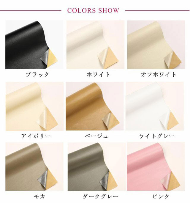 | 色 | ブラック ホワイト オフホワイト アイボリー ベージュ ライトグレー モカ ダークグレー ピンク レッド ワインレッド ブラウン コーヒー ダークブラウン ブルー ミントグリーン グリーン カーキ パープル イエロー |