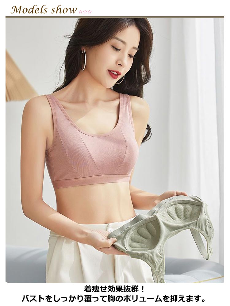 大きな胸を小さく見せるブラジャー着痩せ効果抜群!バストをしっかり覆って胸のボリュームを抑えます。通気性・速乾性・吸水性に優れているので洗濯後もすぐに乾きます。バストをすっぽり包み込むフルカップを採用しており、バストをしっかりホールド♪フィットネス、ランニング、ヨガ、インナーウェア、ダンスなど、いろいろなスポーツに大活躍のアイテム。