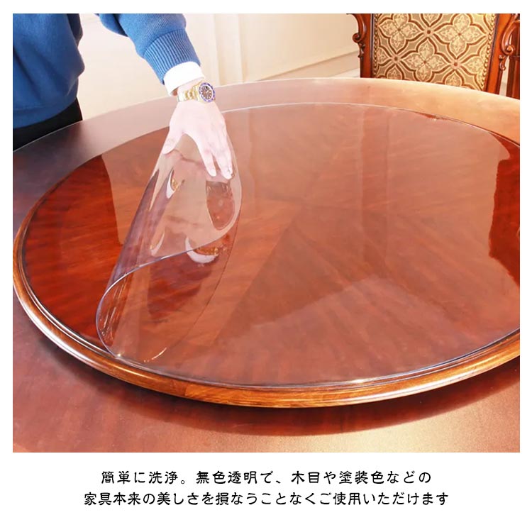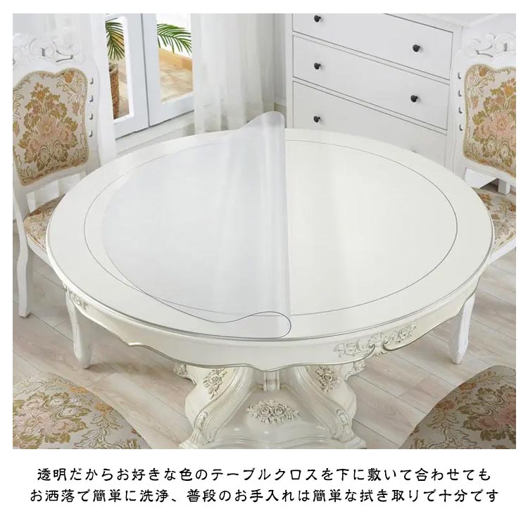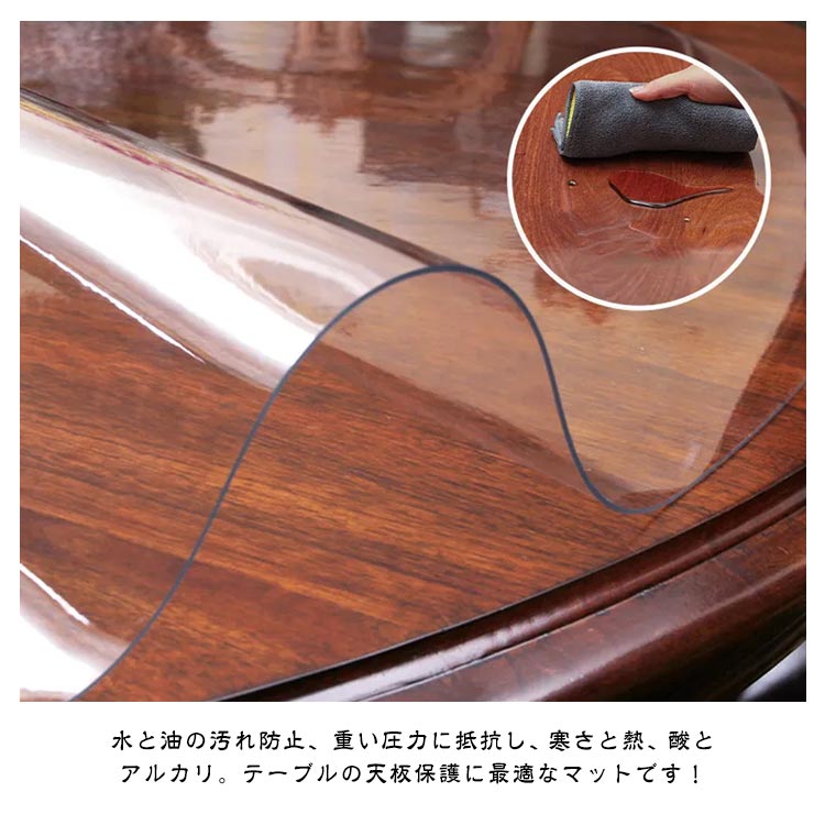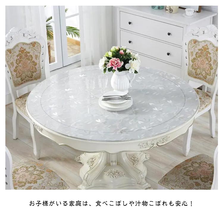 厚1mm テーブルクロス 透明 撥水加工 ビニール 透明 柄 円形 丸形 おしゃれ 厚1mm テーブルマット PVC 円形 食卓デスクマット 防水 撥油 耐熱 汚れ防止 傷防止 家庭用 オフィス用 ダイニングテーブル クリア デスクマット 撥水