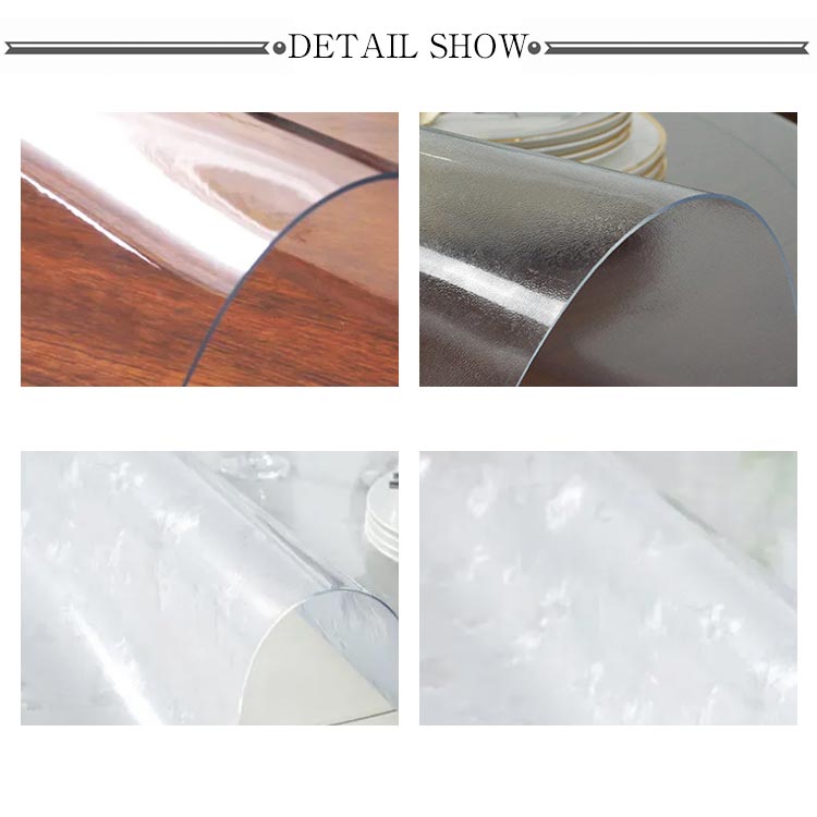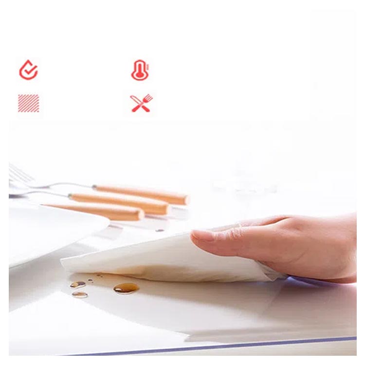 新品透明PVCテーブルクロス、シンプルで明るいお部屋を彩ります!簡単に洗浄。無色透明で、木目や塗装色などの、家具本来の美しさを損なうことなくご使用いただけます。耐久性に優れていて、 ホテル、レストランにおけるハードユースにも安心して使用される!お子様がいる家庭は、食べこぼしや汁物こぼれも安心!透明だからお好きな色のテーブルクロスを下に敷いて合わせてもお洒落で簡単に洗浄、普段のお手入れは簡単な拭き取りで十分です。水と油の汚れ防止、重い圧力に抵抗し、寒さと熱、酸とアルカリ。テーブルの天板保護に最適なマットです!