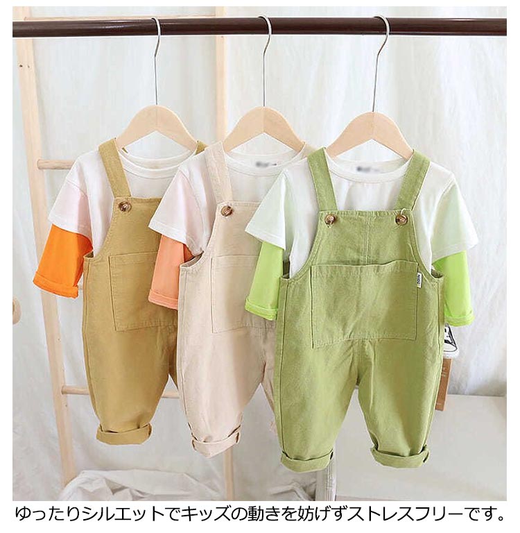 サロペット 女の子 男の子 子供服 オーバーオール ロングパンツ オールインワン 長ズボン 綿 ボトムス キッズ ベビー 通学 通園 春 夏 秋 シンプル 無地 ゆったり 80 90 100 110 120