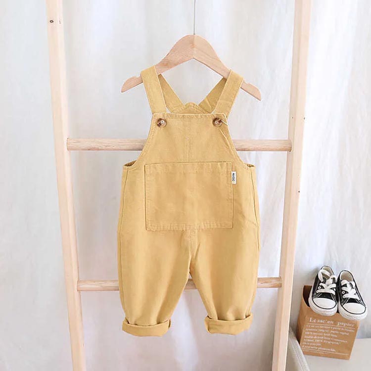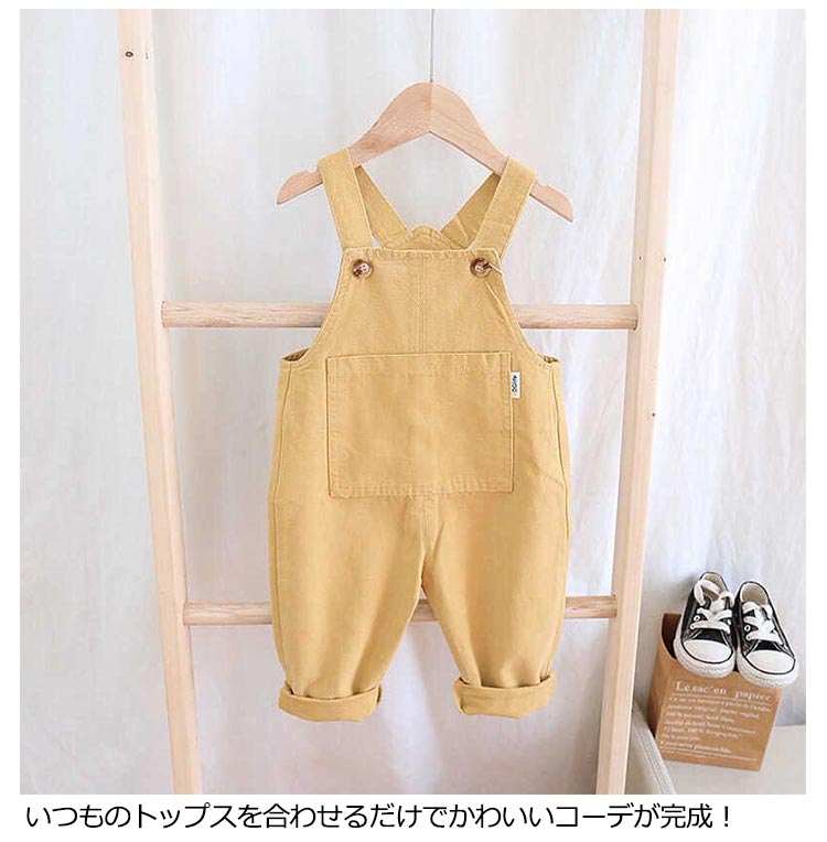 ゆとりのあるかわいいオーバーオール。ゆったりシルエットでキッズの動きを妨げずストレスフリーです。程良い厚みでロングシーズン着用できるのも嬉しい一枚。いつものトップスを合わせるだけでかわいいコーデが完成!女の子も男の子も楽しめるユニセックスデザインです。