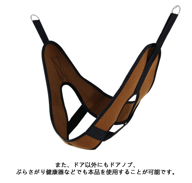 | ベルトのみ。おうちでのび~る首ベルト。 正常な状態であれば首がしっかりと頭を支えてくれますが、スマホや長時間のデスクワークにより姿勢が悪くなると、首にかかる負担はその何倍にもなります。そのままにせず、自宅で日々の負担を解放しましょう! 折りたたむとコンパクトになりますので、外出先でもご使用いただけます。また、ドア以外にもドアノブ、ぶらさがり健康器などでも本品を使用することが可能です。 | |