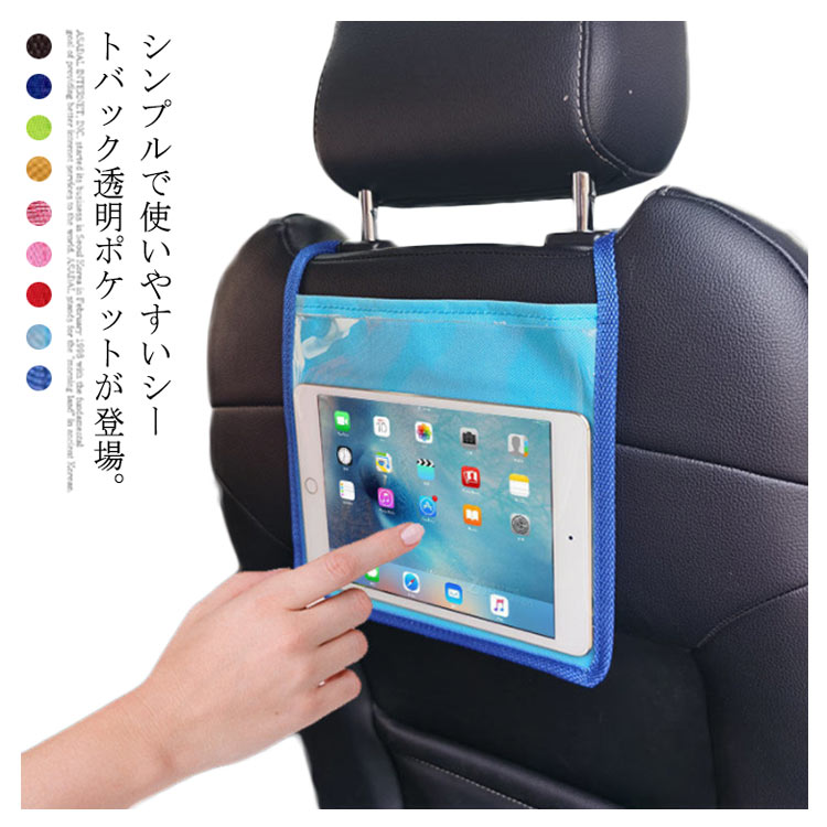 【送料無料】カーシート バックシート iPad タブレット 視聴 ポケット 透明 収納シート 車載ホルダー 後部座席 スマホホルダー タブレットーアクセサリー