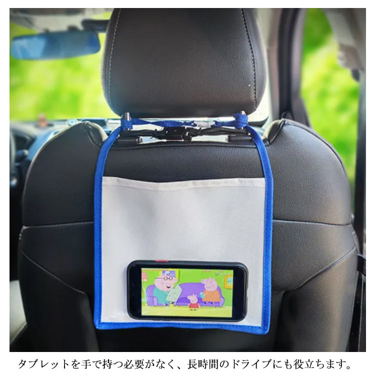 | シンプルで使いやすいシートバック透明ポケットが登場。 後部座席から見やすい位置にスマホ?タブレットを設置できます。 タブレットを手で持つ必要がなく、長時間のドライブにも役立ちます。 透明フイルムポケットはタッチ操作に対応しております。 タブレットでもスマートフォンでも対応することができる2サイズ仕様。 取り付けが簡単でカーシートにバックルを通すだけで装着できます。 | |