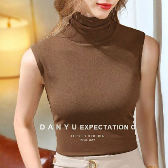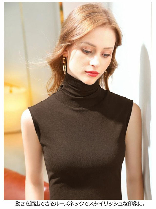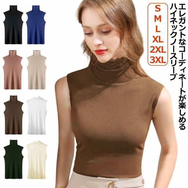 S M L XL 2XL 3XLエレガントなコーディネートが楽しめるハイネックノースリーブ。モダール素材で着心地が抜群。暑い時期は一枚で、寒い時期はインナーとして着用できる。動きを演出できるルーズネックでスタイリッシュな印象に。重ね着スタイルにはもってこいの一枚です。