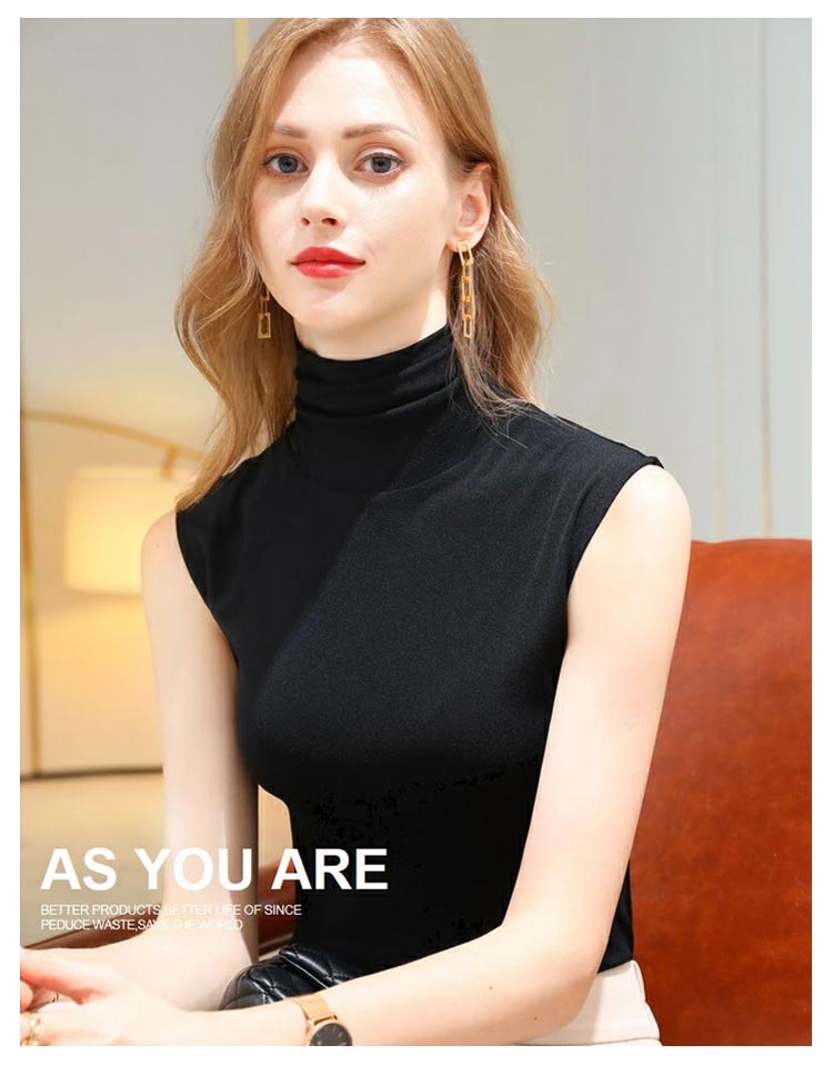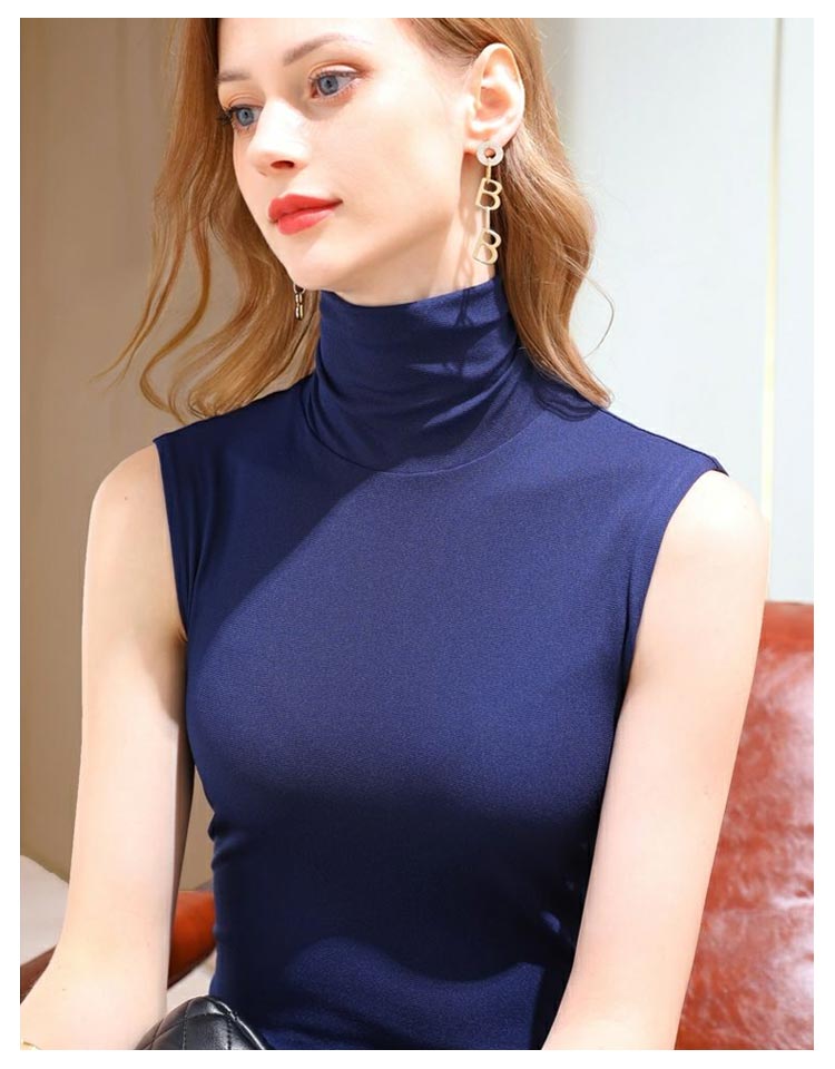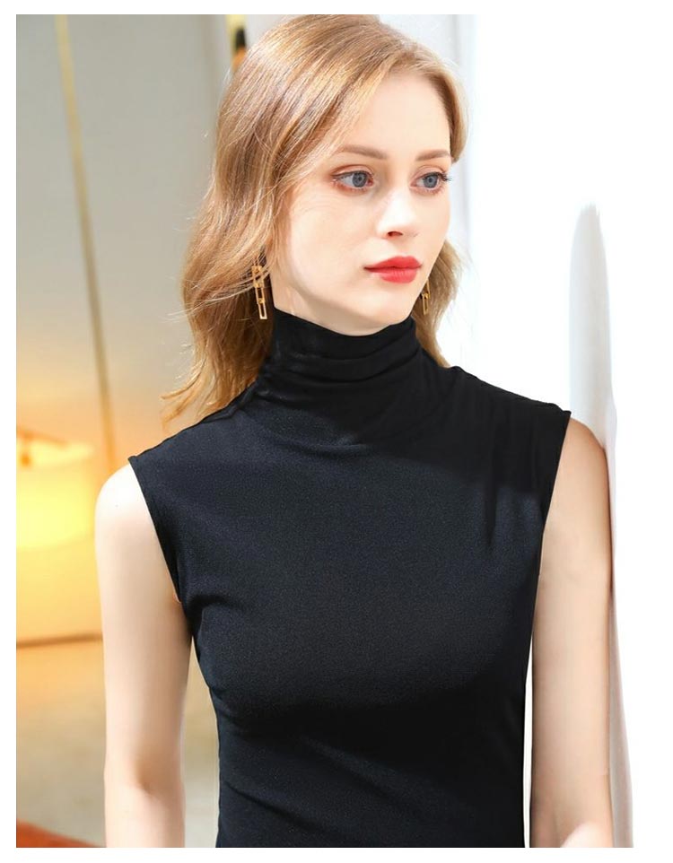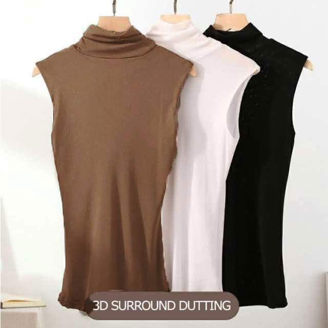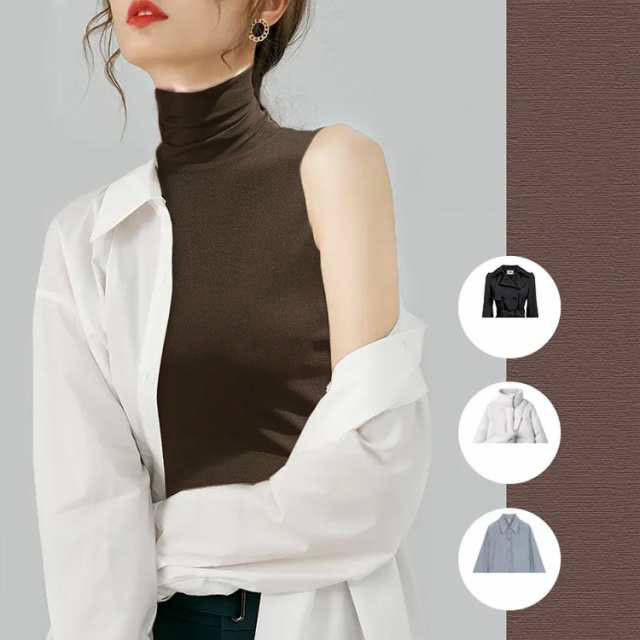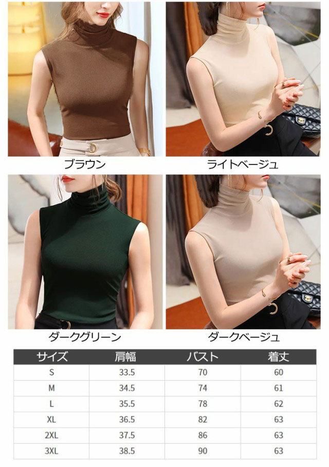 タートルネック ボトルネック ノースリーブ モダール 薄手 春夏 秋冬インナー ノースリーブ ノースリブ トップス カットソー コットン 綿 ハイネック ノースリーブ タートルネック ハイネック 送料無料