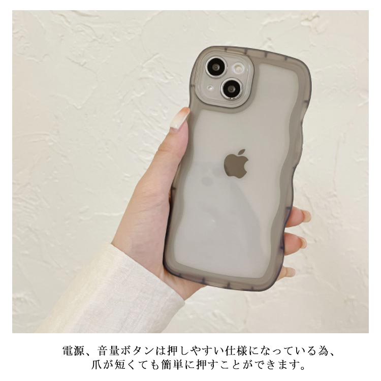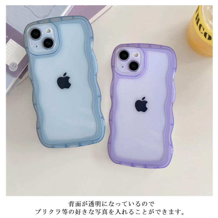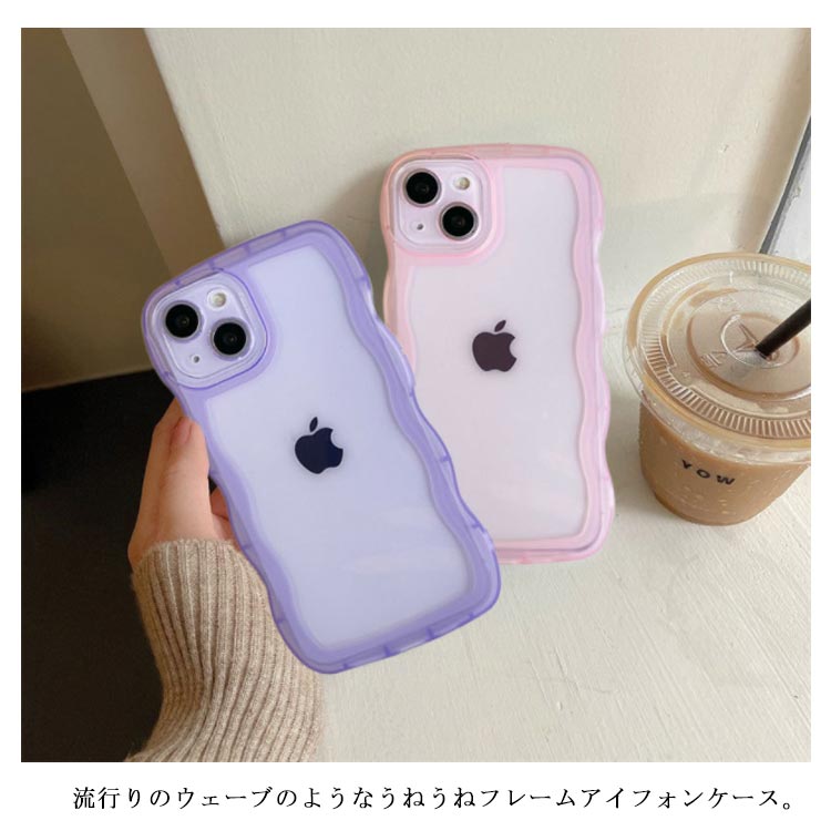 【SNSで話題のiPhone15シリーズケース】いまSNSで話題の可愛いiPhoneケースです。【透明で写真を入れる】背面が透明になっているのでプリクラ等の好きな写真を入れることができます。【大人気】流行りのウェーブのようなうねうねフレームアイフォンケース。【押しやすい】電源、音量ボタンは押しやすい仕様になっている為、爪が短くても簡単に押すことができます。