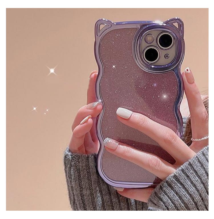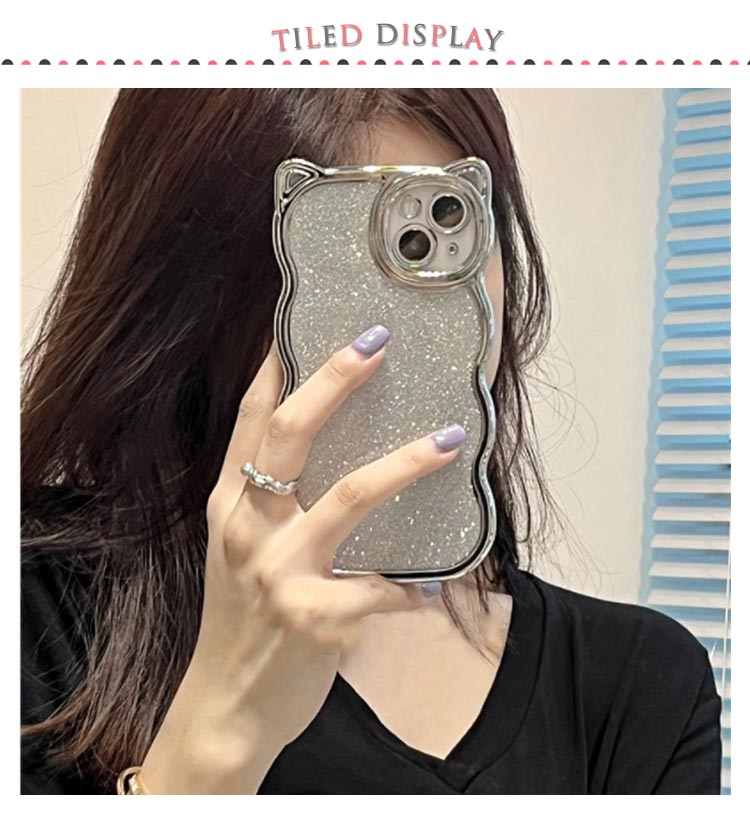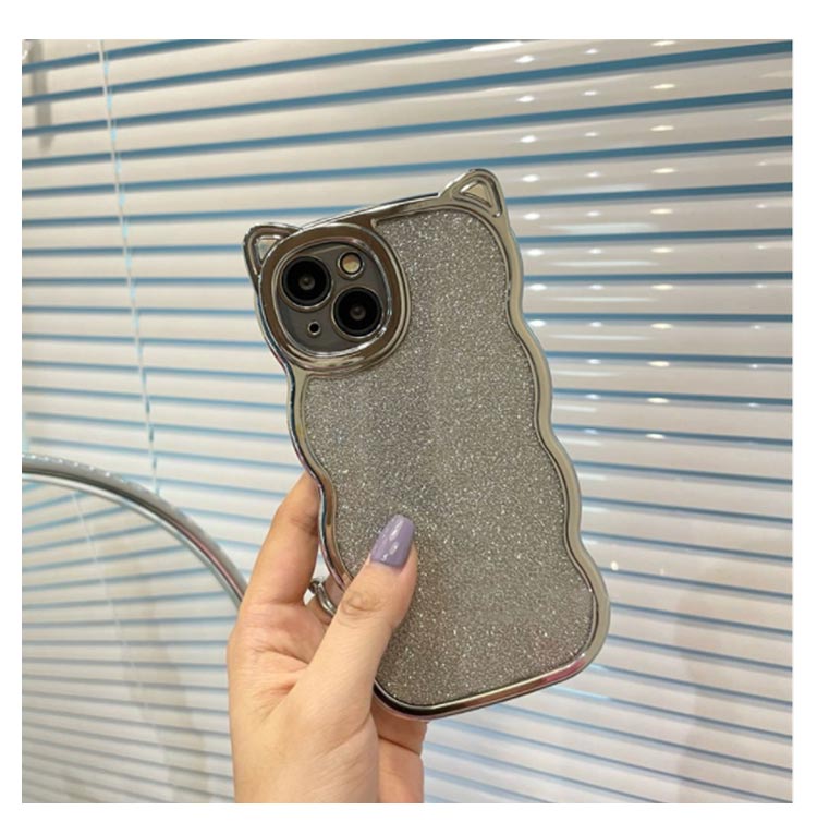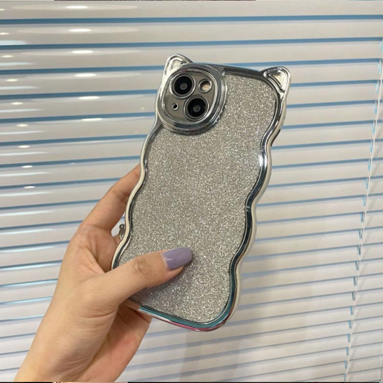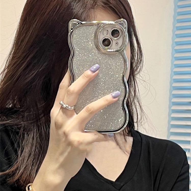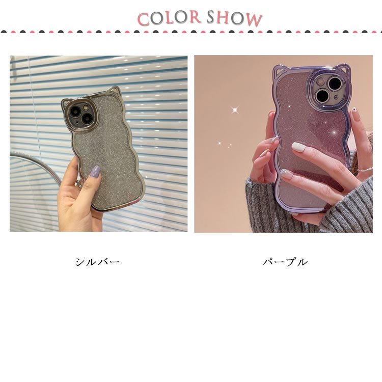 アイフォン iPhone 14 13 12 11 pro max plus スマートフォン スマホ 携帯 ケース カバー 猫耳 ハロウィン シルバー おしゃれ 可愛い 波 クリア iphoneケース 送料無料