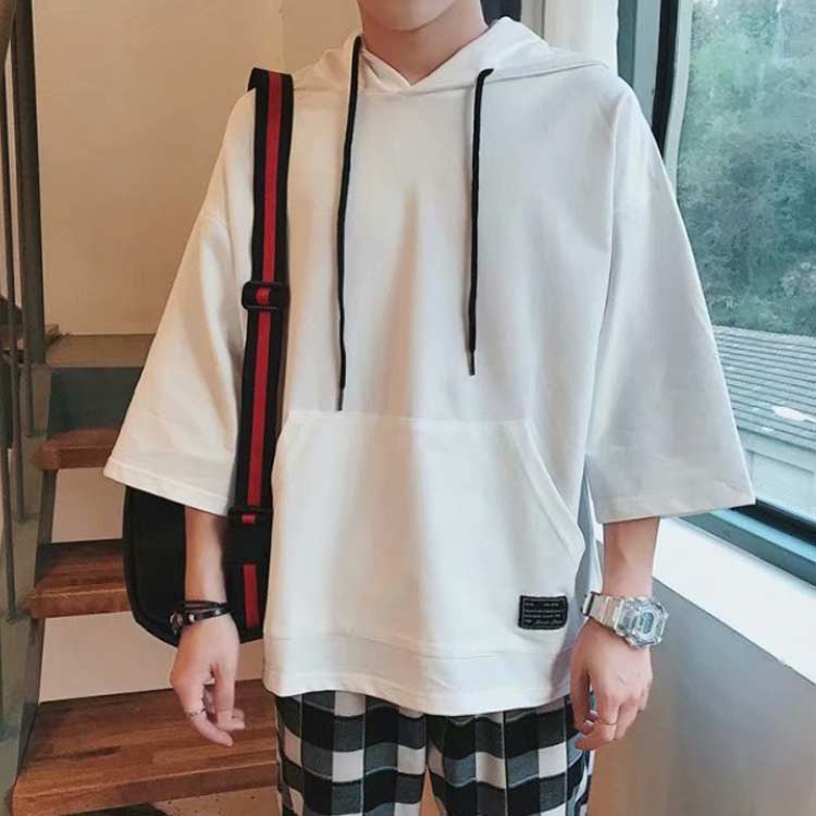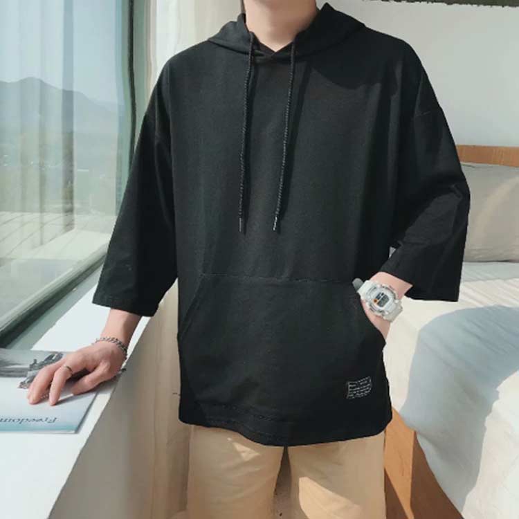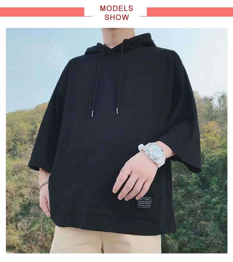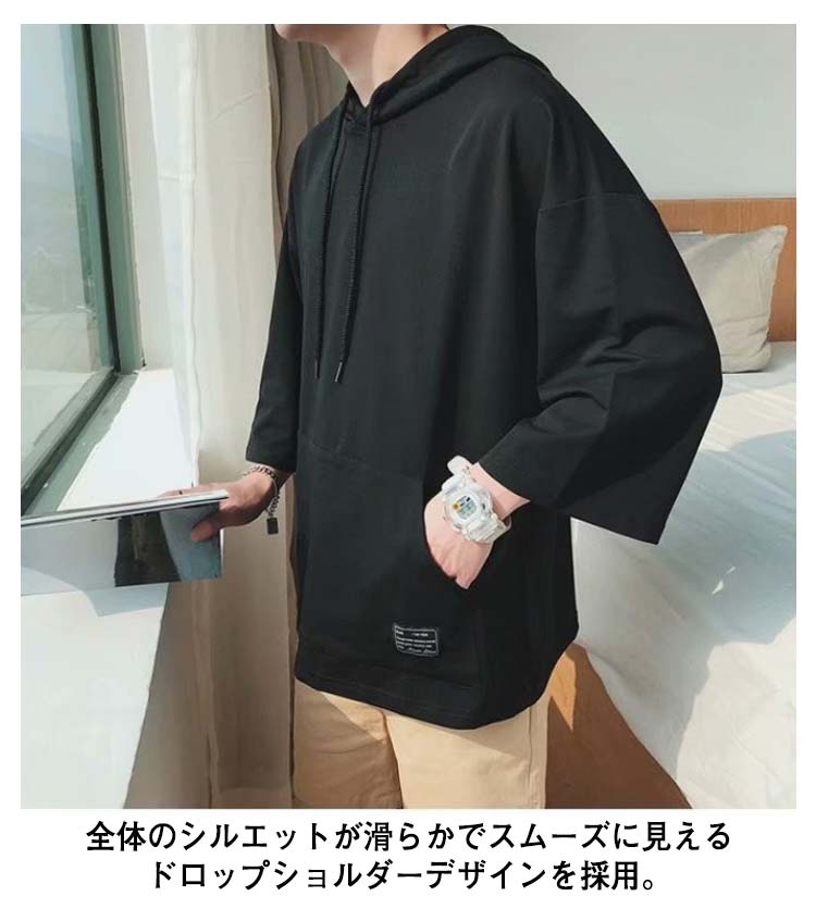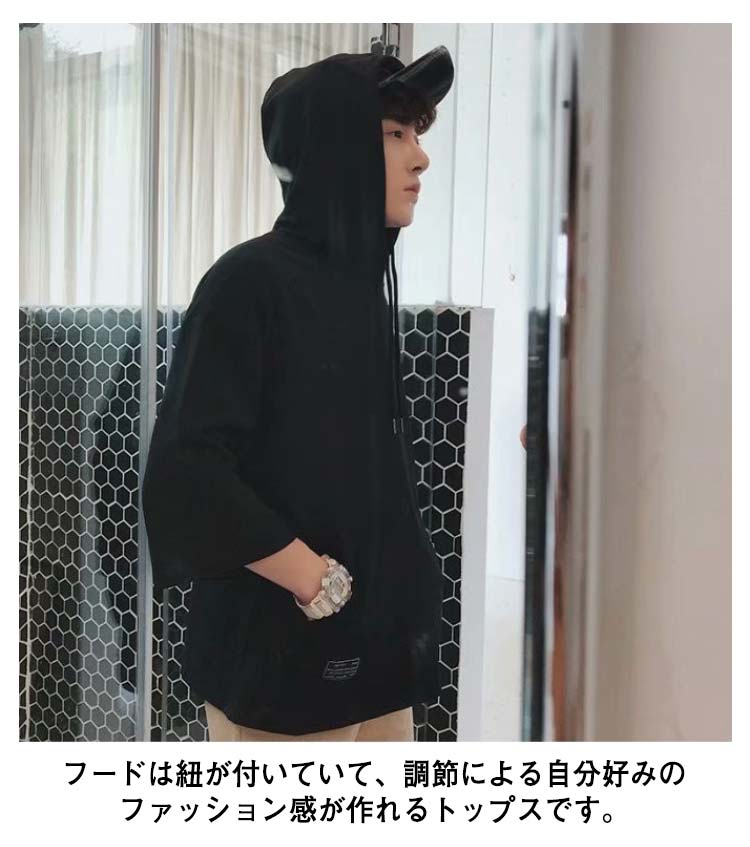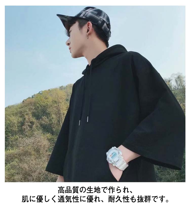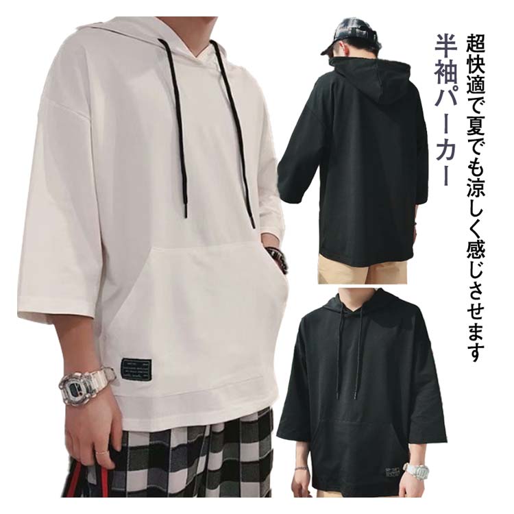 パーカー メンズ 半袖パーカー 半袖 薄手パーカー フード付きtシャツ プルオーバーパーカー 薄手 春服 夏服 冷感 トップス 大きいサイズ 無地 シンプル 夏 韓国 白 黒 ホワイト ブラック 送料無料