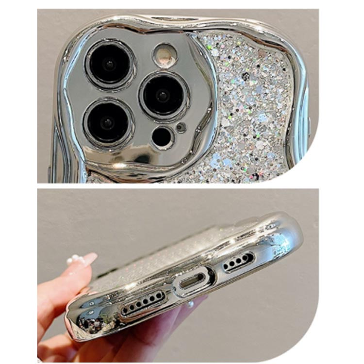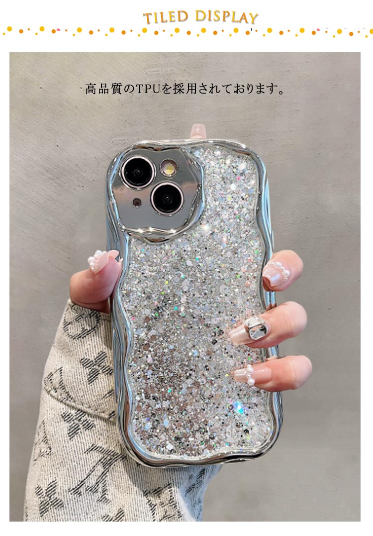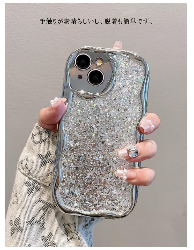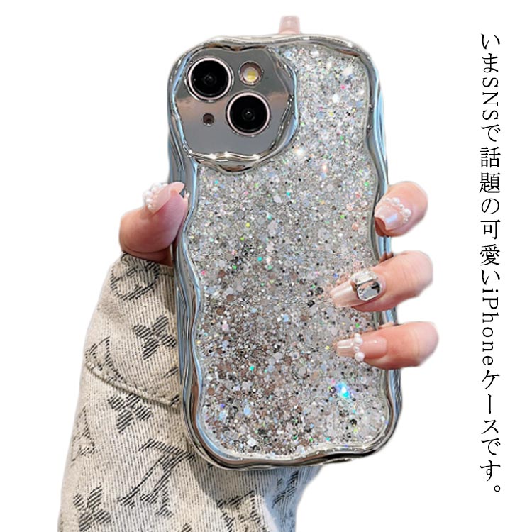 うねうね 可愛い iPhoneケース キラキラ うねうね なみなみ iphone15Plus Pro max iphone14 iphone13pro max iphone12 シルバー 韓国 シリコン 耐衝撃 かわいい スマホケース ウェーブ おしゃれ SNS 大人かわいい 女子