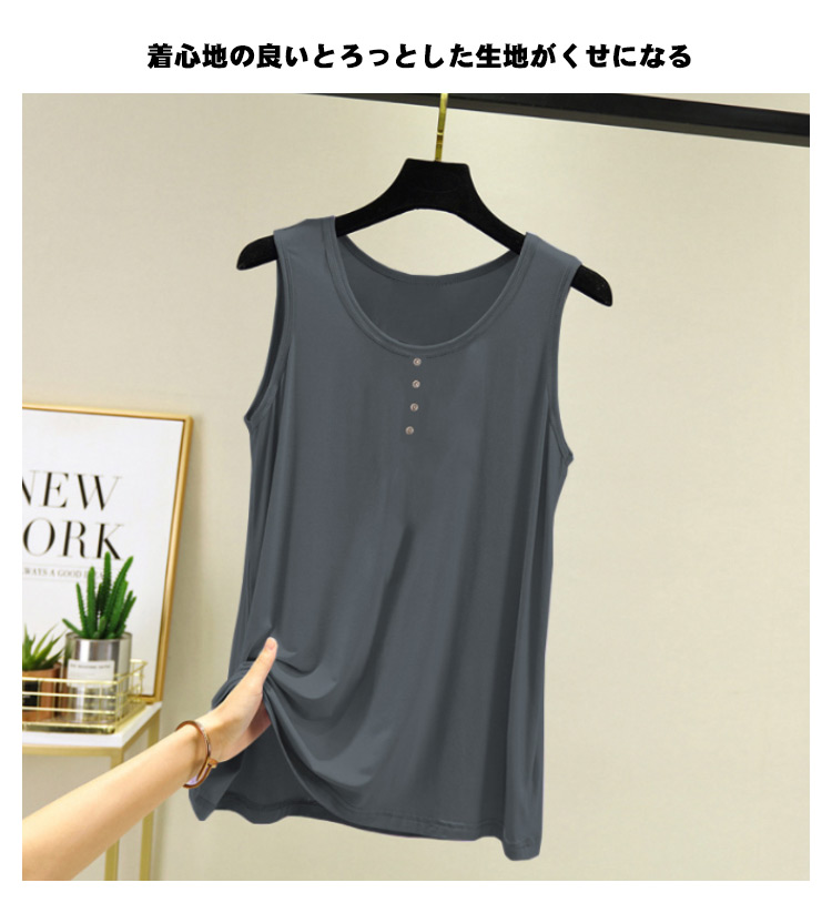 夏でも涼しく、快適に着用できるタンクトップ着心地の良いとろっとした生地がくせになるらかな肌触りと通気性・吸水性に優れるフレア感のあるAラインシルエットで仕上げてさりげなく体型をカバー枚でもカーディガンなどのインナーとしても使える万能item