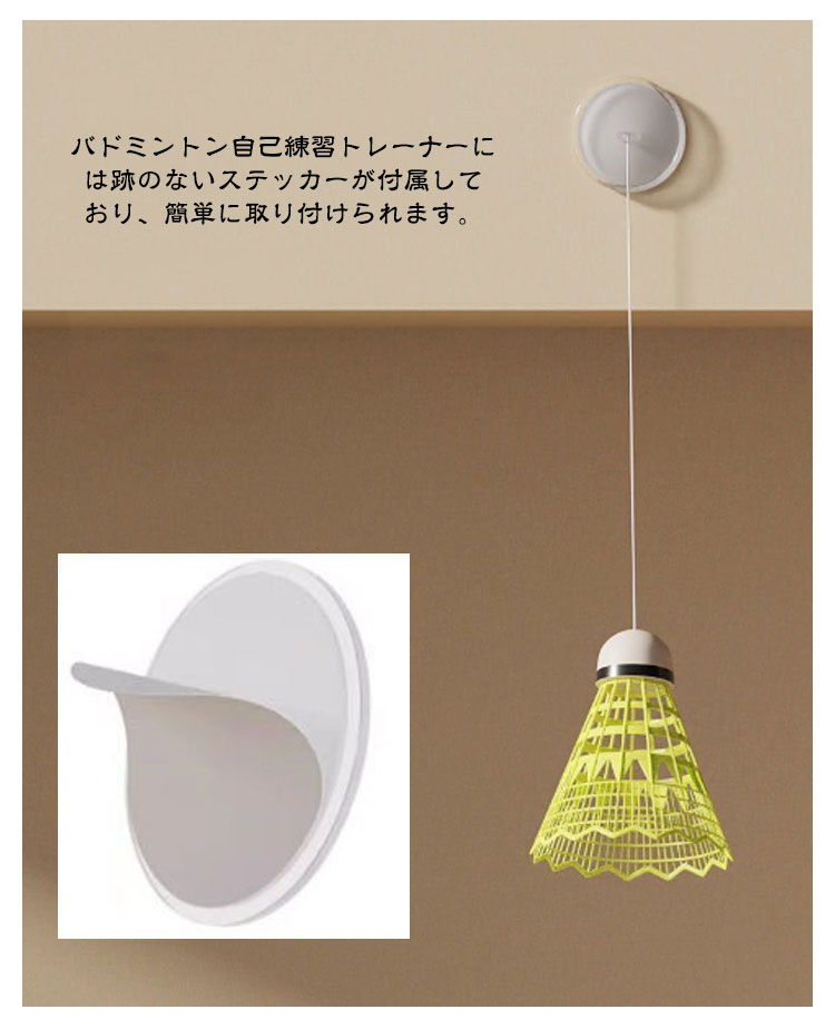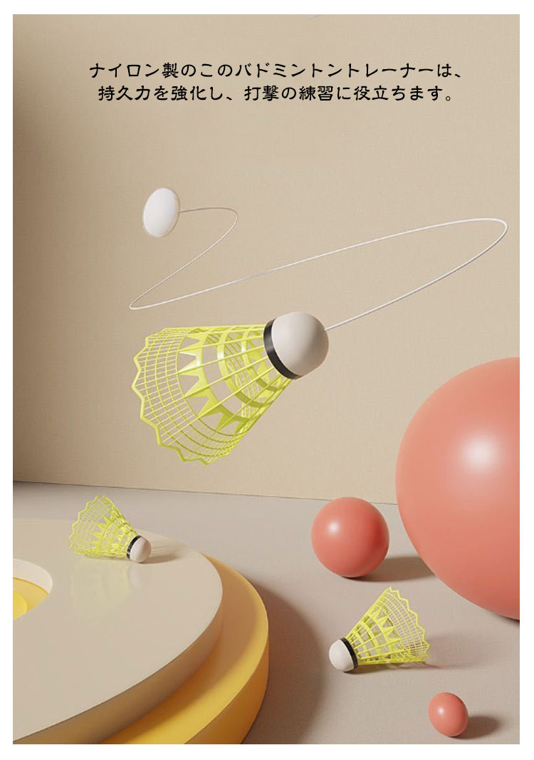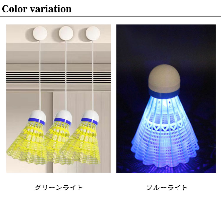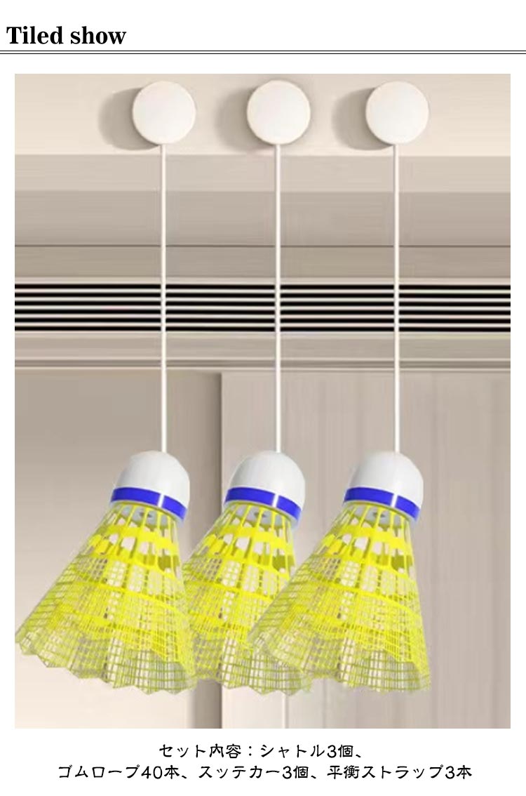 【室内バドミントン練習】【光るシャトル】【3個セット】ボールを拾う必要がなく、自宅で楽しく楽しくバドミントントレーニングできます。光るシャトル、練習しやすい!ボールをさまざまな角度や速度で跳ね返せるため、一人での練習に最適です。ナイロン製のこのバドミントントレーナーは、持久力を強化し、打撃の練習に役立ちます。バドミントン自己練習トレーナーには跡のないステッカーが付属しており、簡単に取り付けられます。壁を傷つけずにしっかりと押すだけです。どこにでも設置できるので多用途に使えて便利です。セット内容:シャトル3個、ゴムロープ40本、スッテカー3個、平衡ストラップ3本