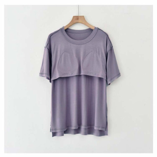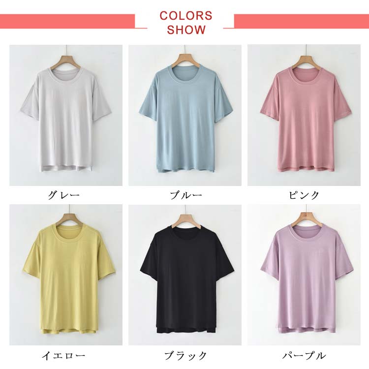 半袖Tシャツ ラウンドネック カップ付きインナートップス 半袖 カップ付き ブラトップ カップ付きTシャツ レディース パット付き ルームウェア アンダーフリー 大きいサイズ tシャツ 無地 Uネック 締め付けない ナイトブラ ナイトウェア 部屋着 春夏 送料無料