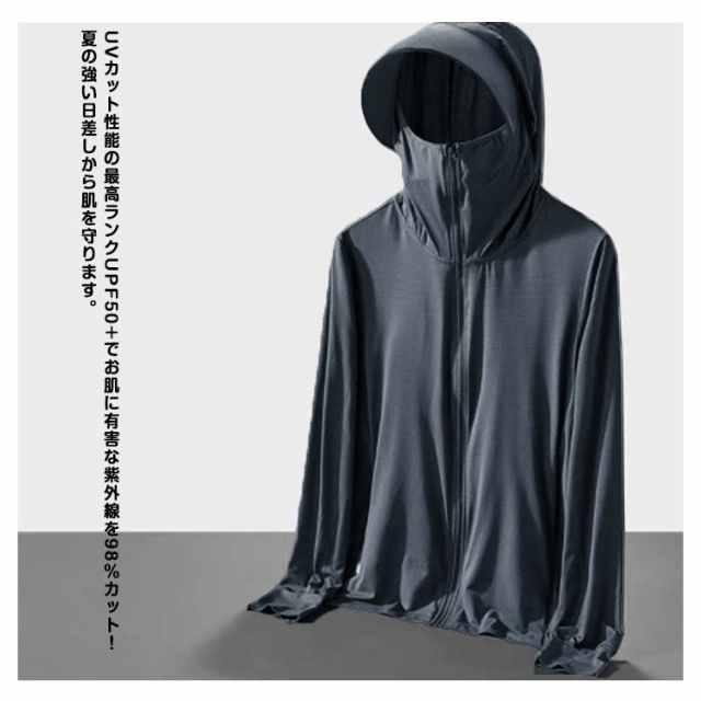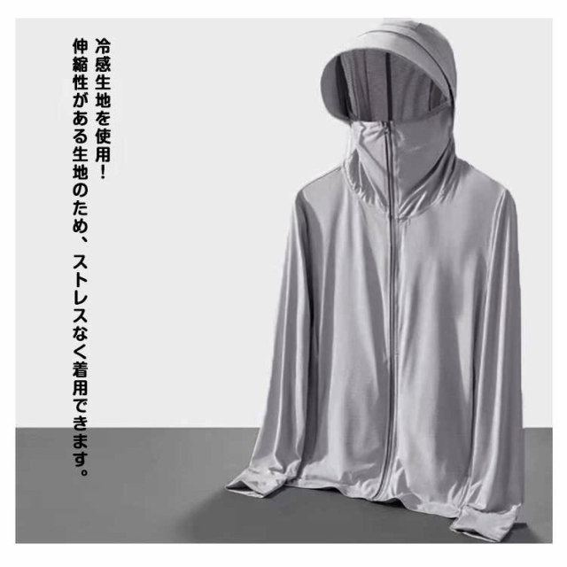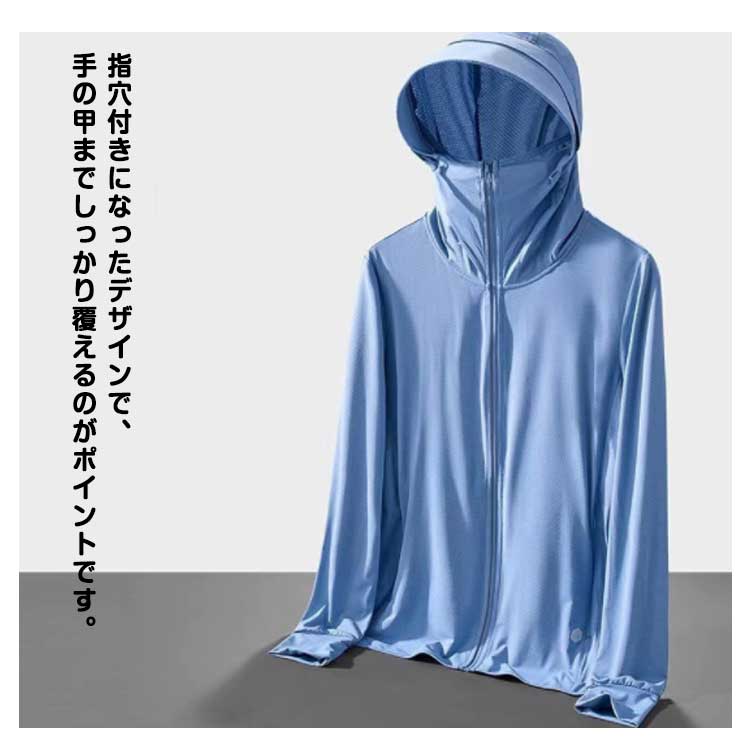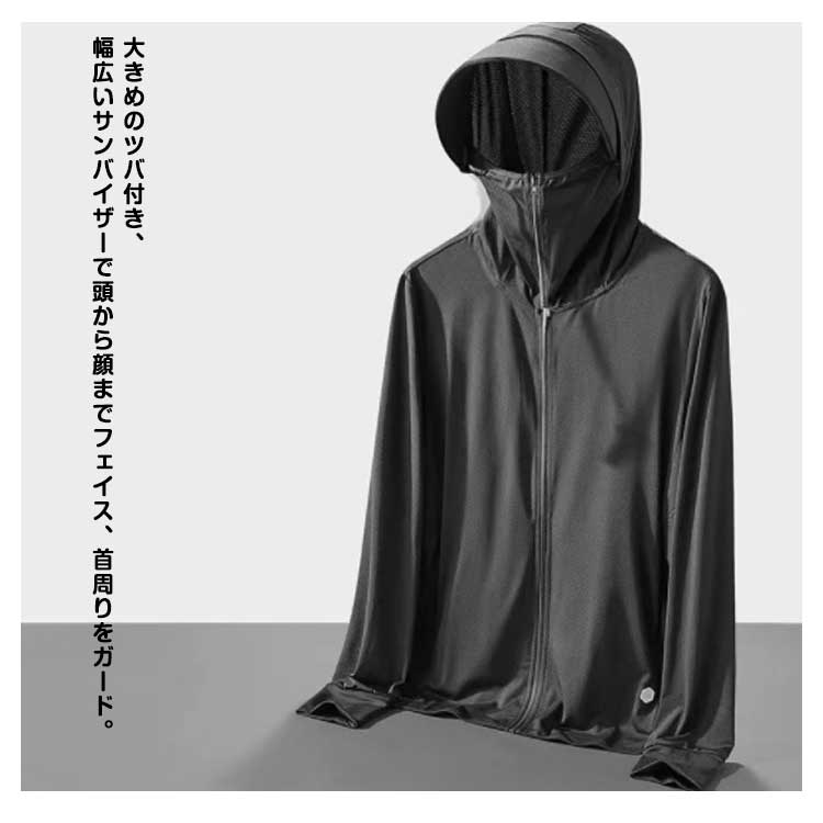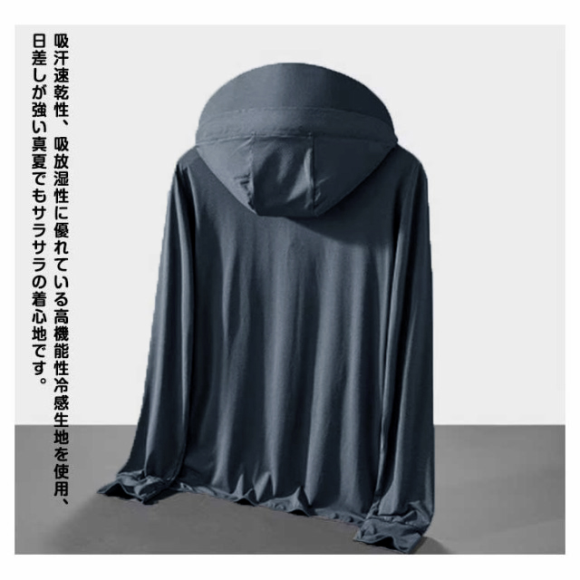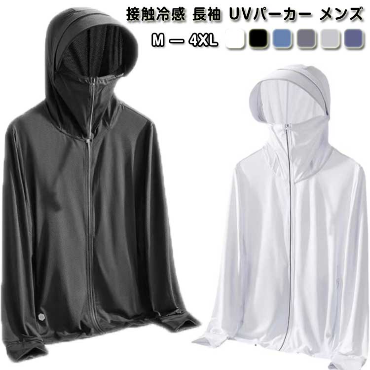 接触冷感 長袖 UVパーカー メンズ UVカット パーカー ラッシュガード アウター 指穴 つば 大きいサイズ ライトアウター トップス 薄手 ストレッチ シャリ感 速乾 UV対策 紫外線対策 日焼け防止 ウトドア 釣り 登山 通勤 通学 春 夏