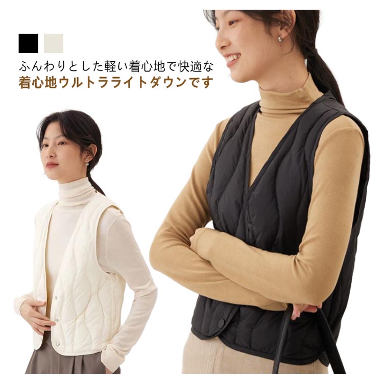 超軽量 ベスト レディース Vネック ウルトラライト 中綿 ベスト ジャケット 中綿ベスト 軽量 防風 保温 防寒 春秋冬 ライト インナー