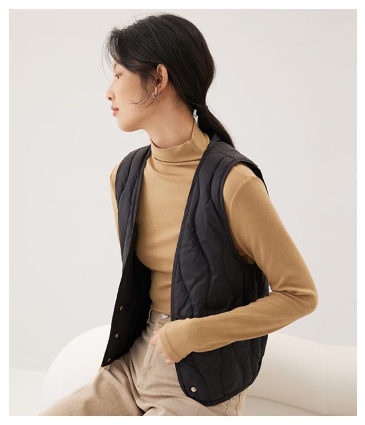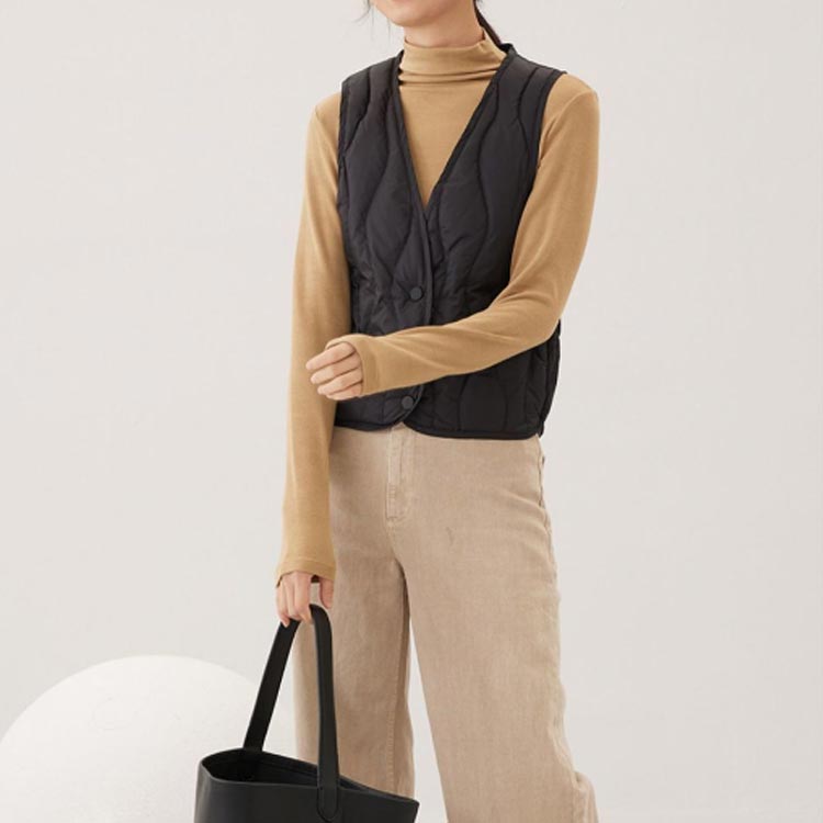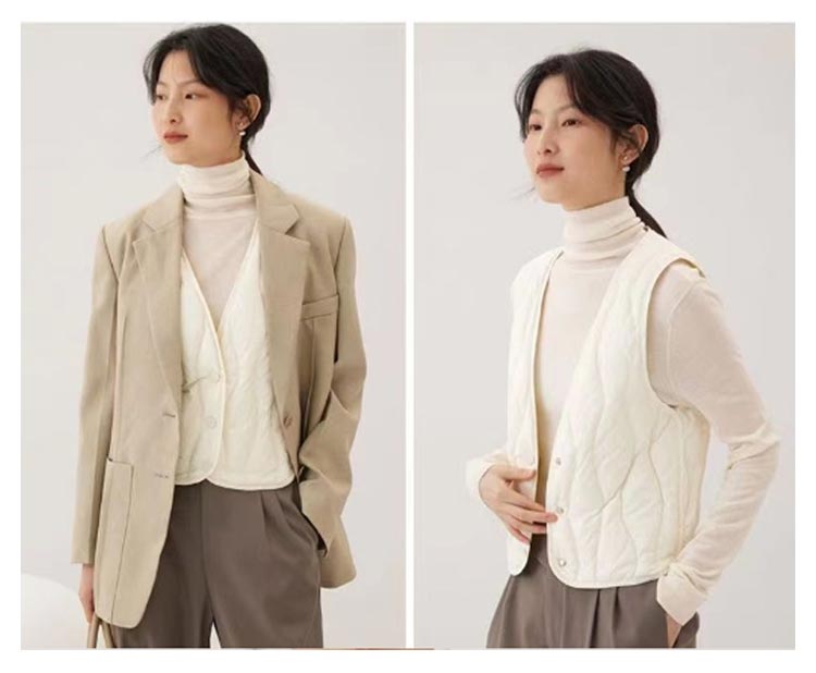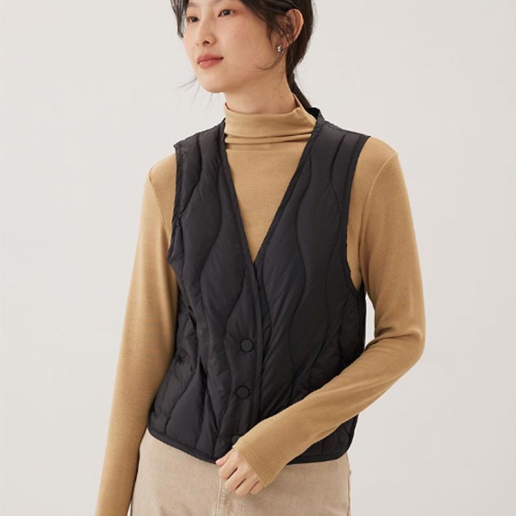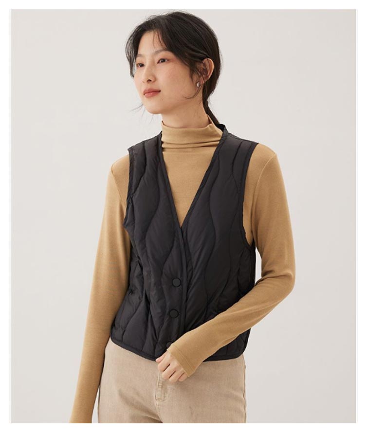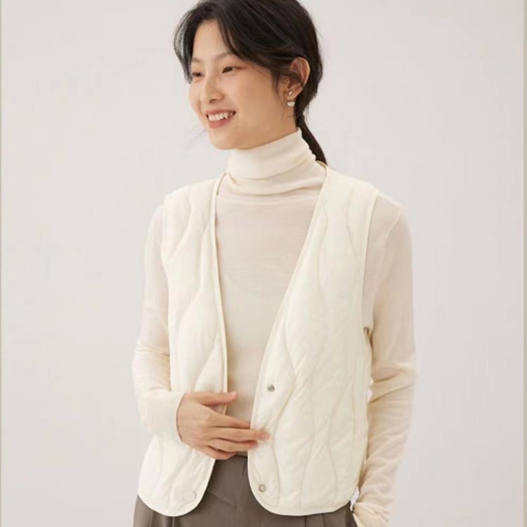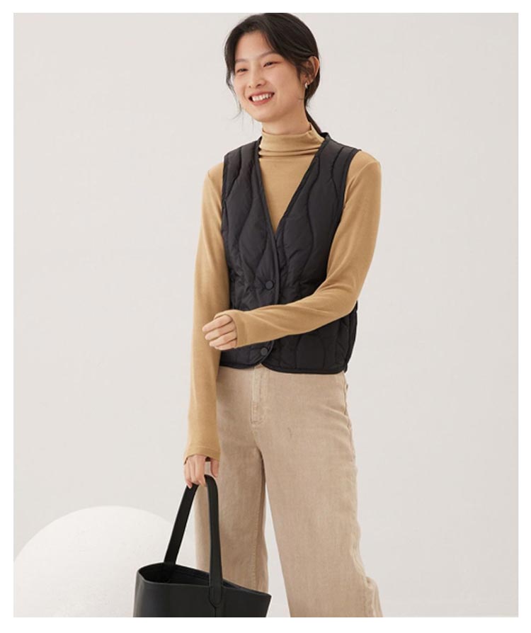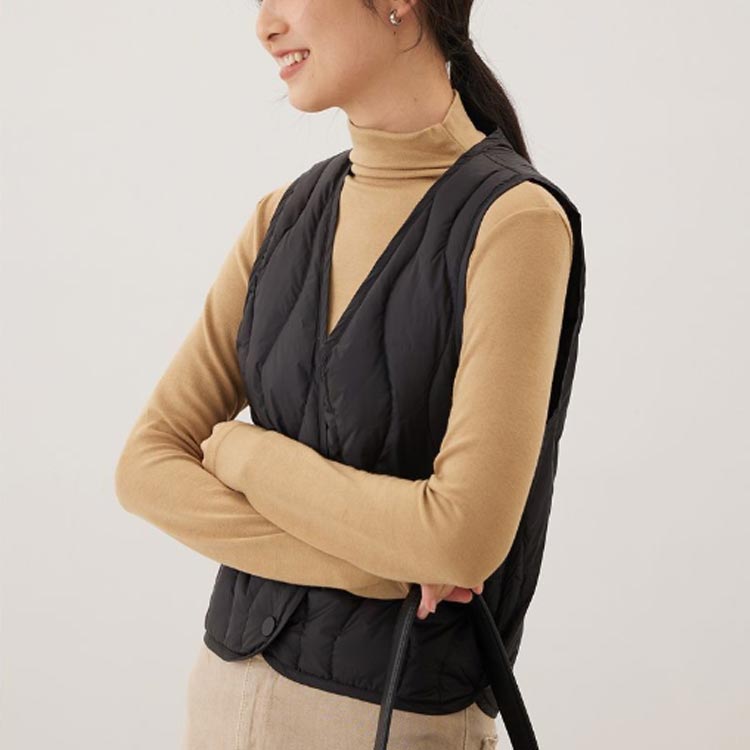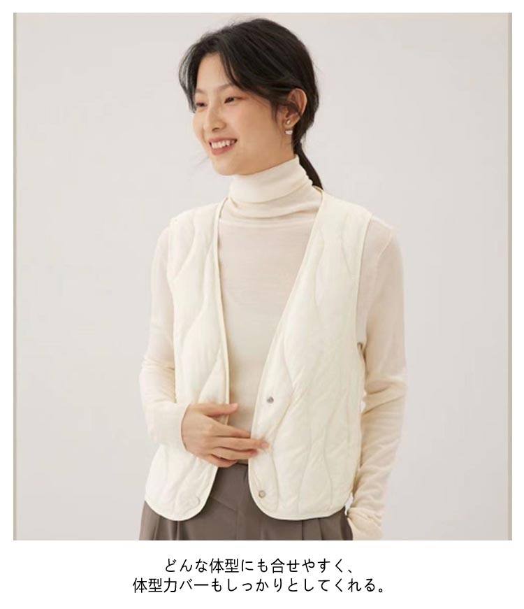 ふんわりとした軽い着心地で快適な着心地ウルトラライトダウンです。お洒落な中綿入りベスト、保温性効果が抜群、外出時の防寒対策にピッタリです。インナーのように薄く、暖かいジャケットやコートの下に着るには最適生地は撥水加工で水をはじき、雪の付着なども防ぎます。雨の日やアウトドアでも安心。どんな体型にも合せやすく、体型力バ一もしっかりとしてくれる。