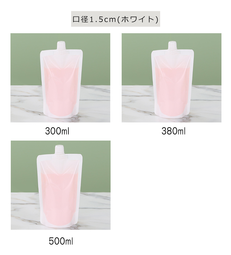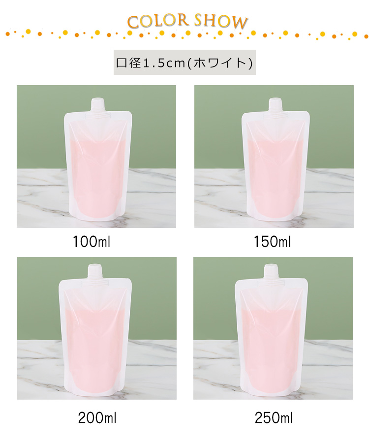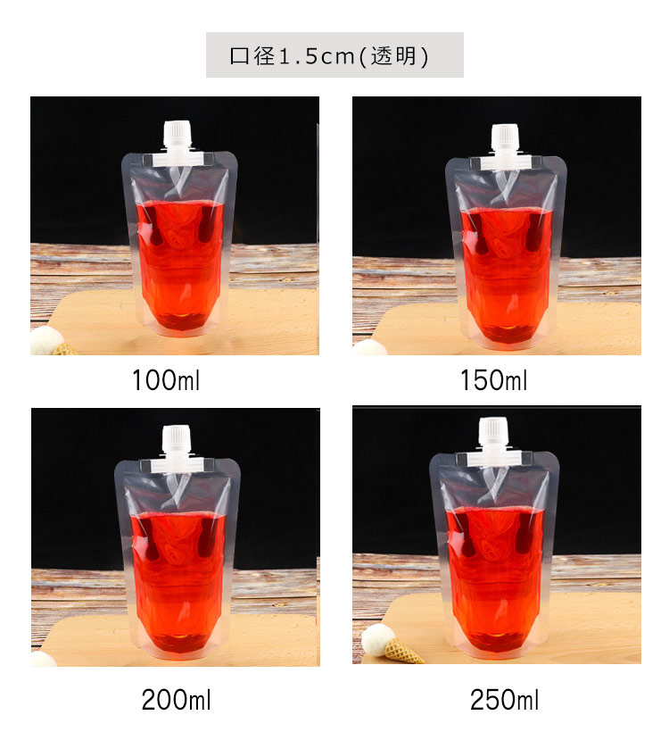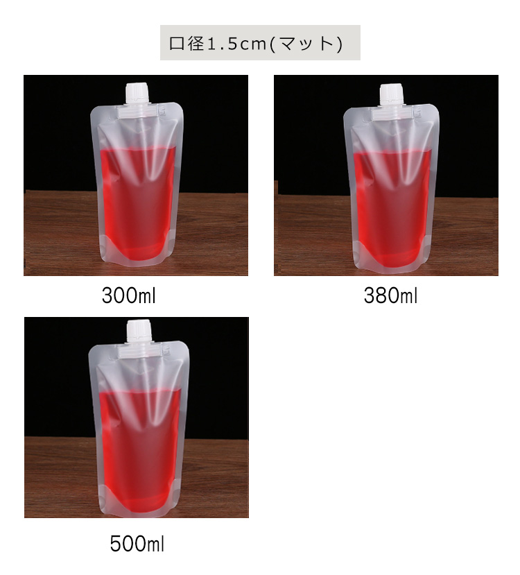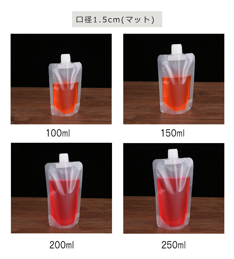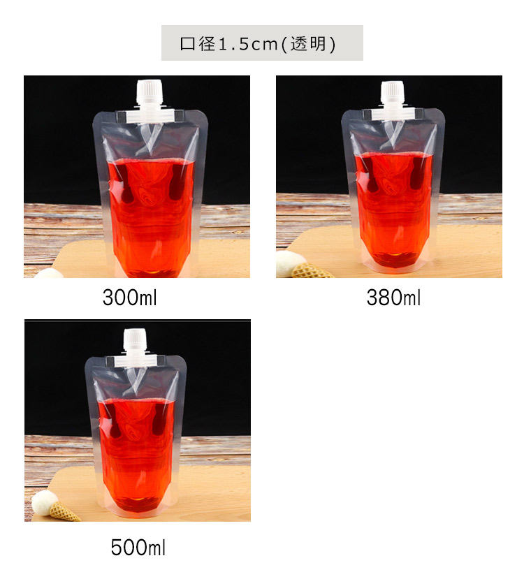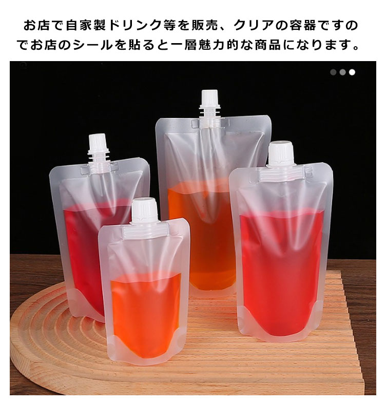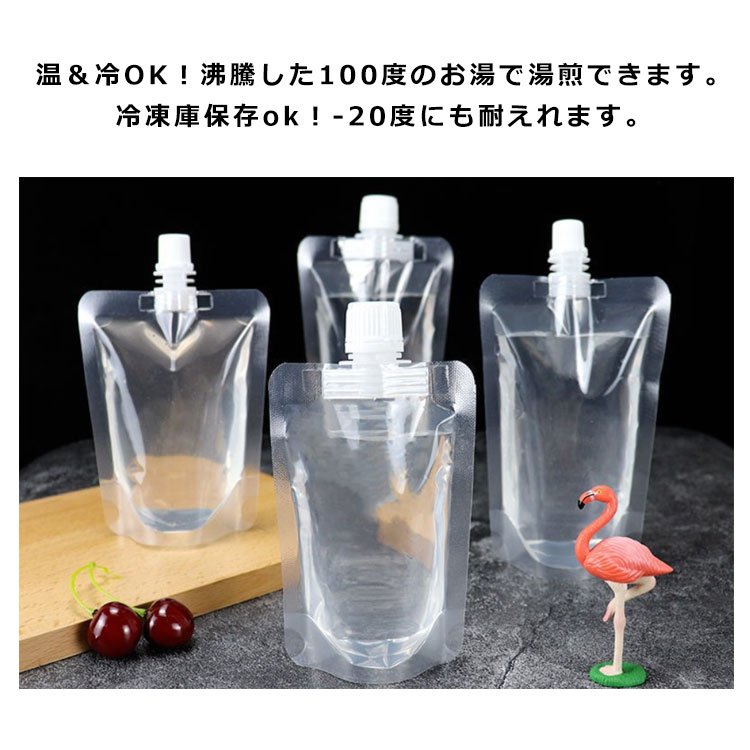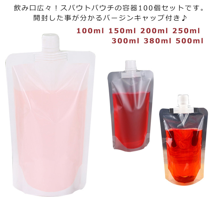 100個入り スパウトパウチ 100ml 150ml 200ml 250ml 300ml 380ml 500ml 透明 スタンドパック キャップ付き スパウト付き スタンドパウチ 広口 液体容器 ドリンクパック ジュースパック ゼリー ジュース 保存容器 自立式 テイクアウト用 耐高温 冷凍 詰め替え 送料無料