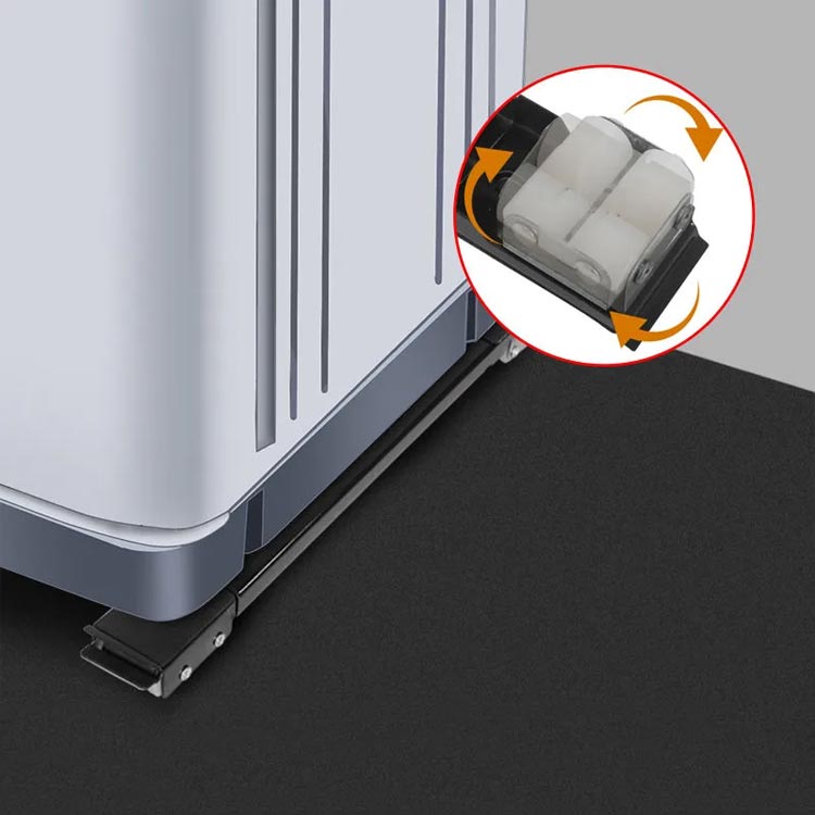 キャスターが360度回転できる最新モデル。前後だけでなく、左右に引き出すこともでき、家具の向きを変更したりなど、移動時もっと楽チン。女性一人でも気軽に動かせます。設置するだけで洗濯機や冷蔵庫周りや下の掃除がラクラク♪防振パッド付きで洗濯時の音も小さくなります。耐荷重300KGまでから、重たいトラム式洗濯機も安心。約4cmの高さ、安定性が高く、掃除もしやすく、防水性も高いです。かさ上げをすることで、排水ホース周りの問題も活躍。レバーを上下するワンタッチ式ストッパーなので簡単に解除も固定もできます。スリムな設計で見た目がスッキリ、インテリアの邪魔にもなりません。