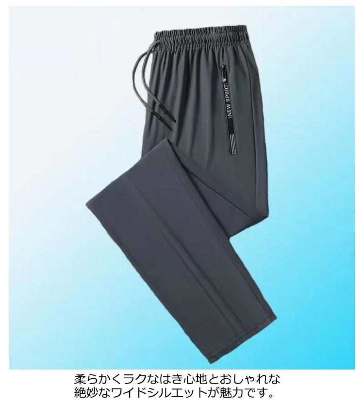 2点セット!接触冷感仕様の生地が汗を吸っても素早く乾く、通気性に優れてムレ感を軽減、春夏の定番メンズパンツ接触冷感で素早く身体の熱を逃して暑い日もクールな着心地。優れた通気性、肌触りも柔らかく、着心地の良さも抜群。春夏秋にもさわやかに着られます。サラッとはきやすいパンツ。 柔らかくラクなはき心地とおしゃれな絶妙なワイドシルエットが魅力です。カジュアルな見た目ながらも、無駄な装飾を施さないシンプルなデザインで様々なコーディネートにマッチします