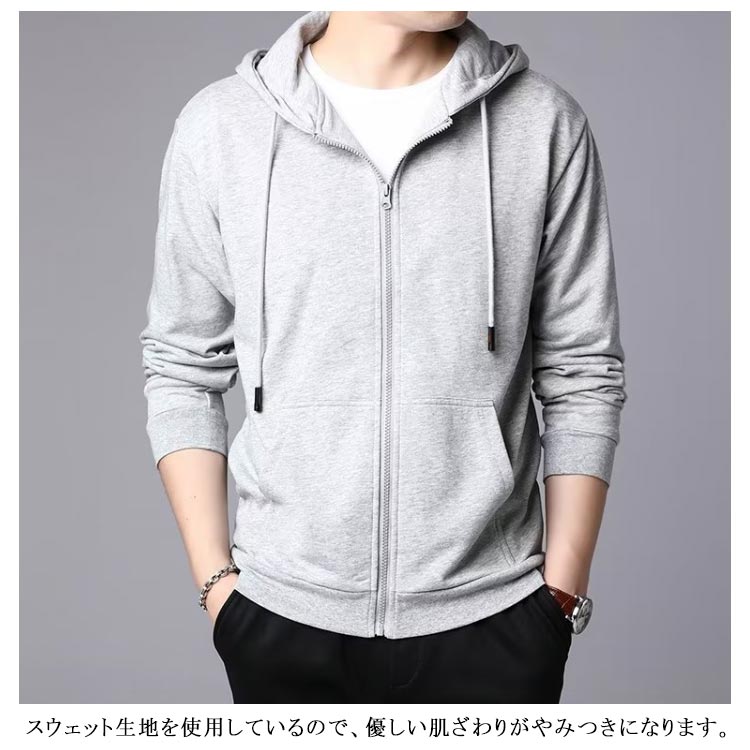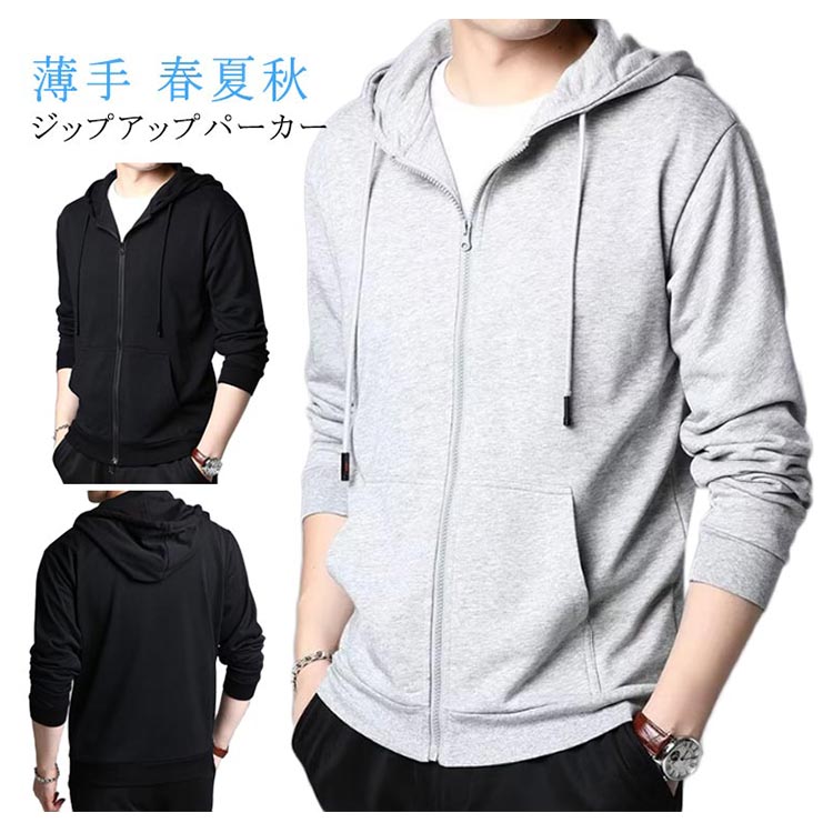 ジップアップパーカー メンズ 春 夏 薄手パーカー 長袖 スウェットパーカー 羽織り ゆったり トップス ジップパーカー ルームウェア ウォーキング 無地 シンプル 大きいサイズ 春夏秋 グレー ブラック