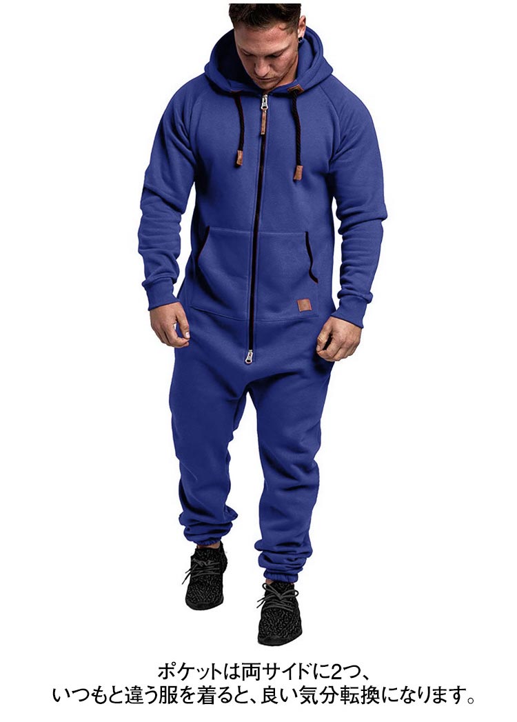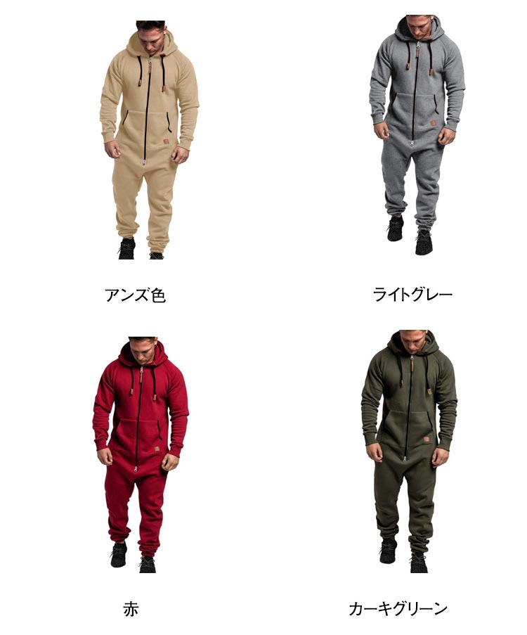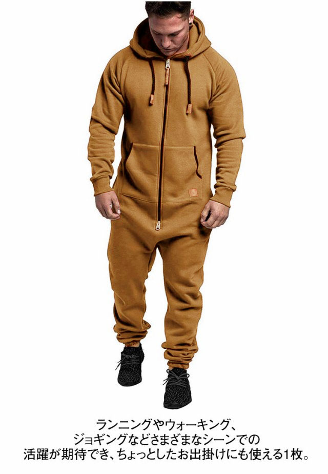 パーカー ツナギスエット ツナギ ワークウェア オーバーオール 部屋着 オールインワン ジップアップ フード付き スウェット 長袖 メンズ 無地 運動服 ルームウェア 作業服 つなぎ