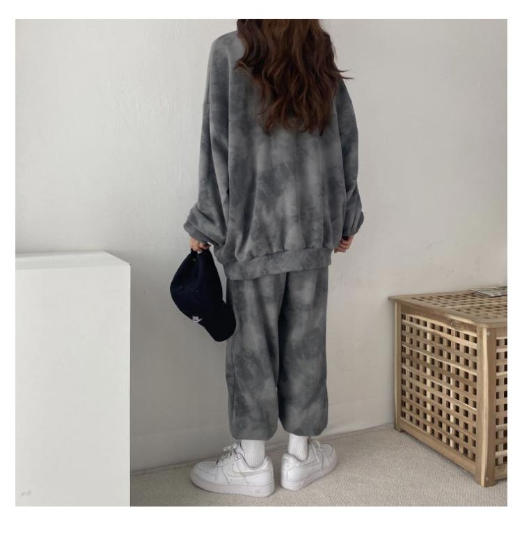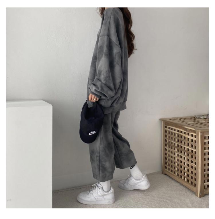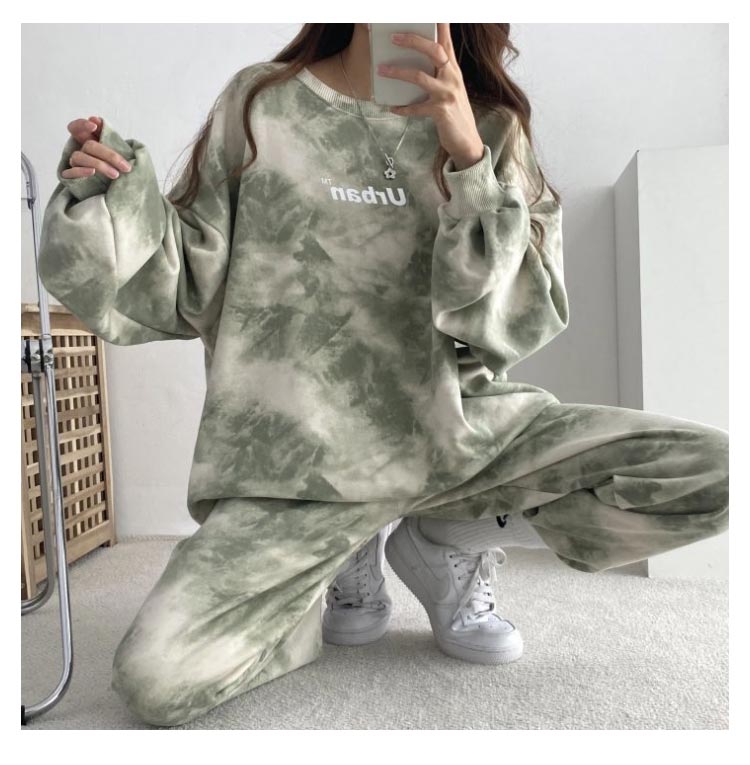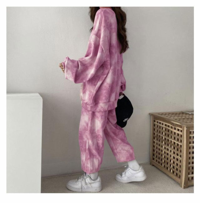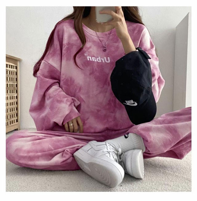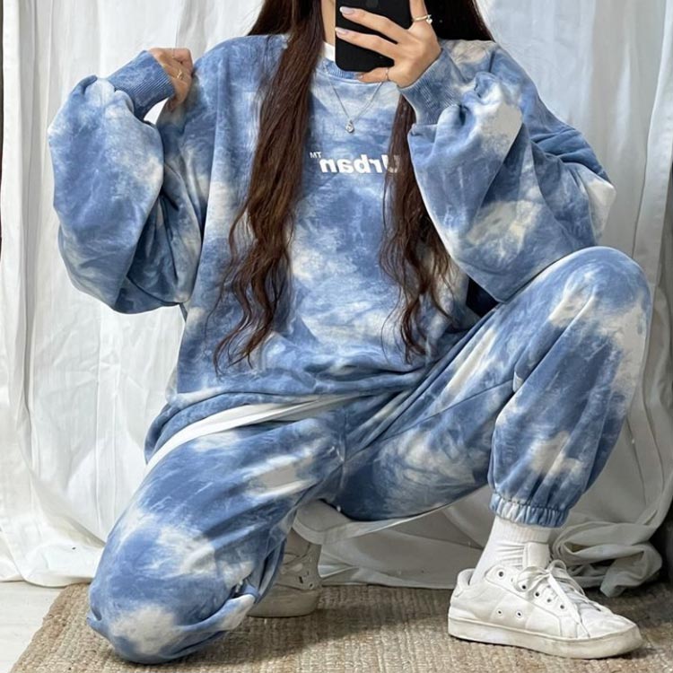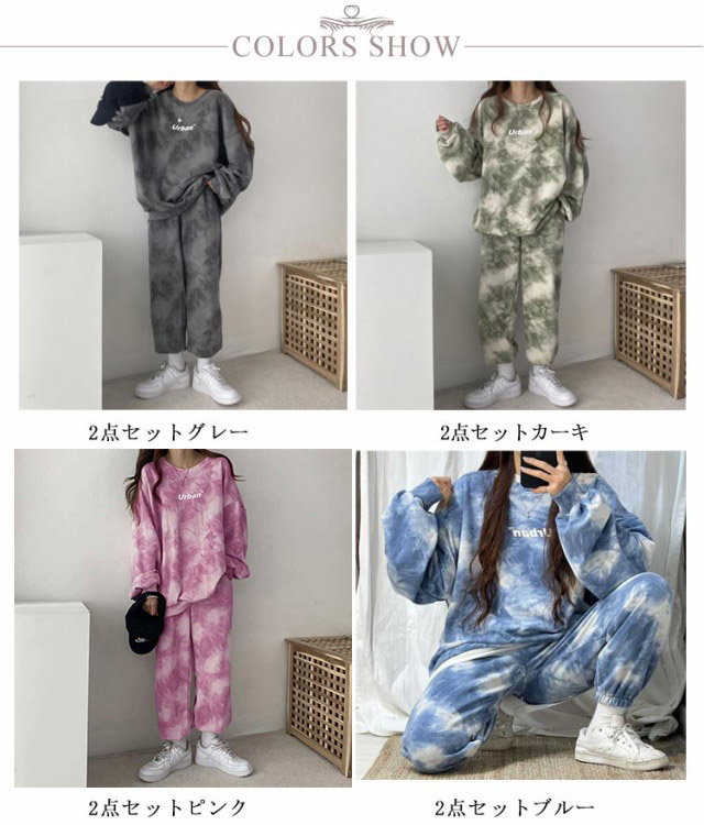 タイダイ染めしたトレーナー・スウェットパンツ裏起毛上下セット。ゆとりのあるサイズ感でリラックス感のある穿き心地が叶う。トレンドのタイダイ染めが今っぽい雰囲気にしてくれます。ルームウェアやパジャマとしてはもちろん、近所へのお散歩やお出かけにも着用いただけるワンマイルウェアとしても活躍してくれます!セットではもちろん、上下別々でも使いやすく、コーディネートの幅が広がる嬉しいアイテムです。