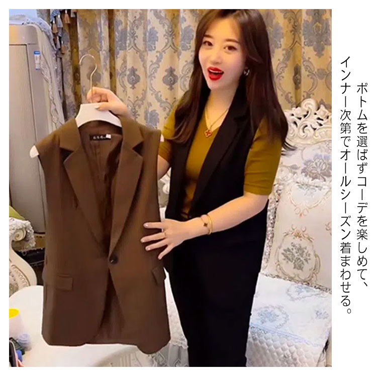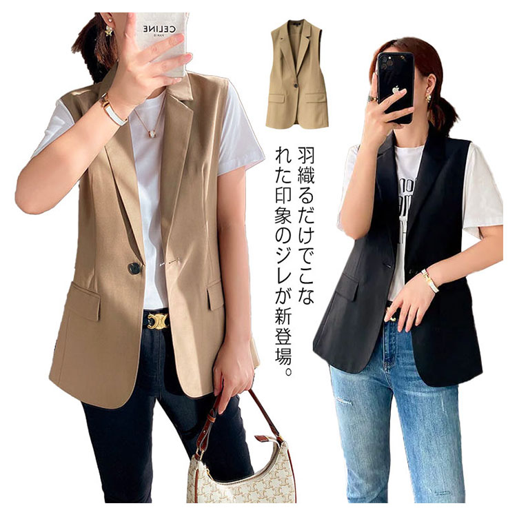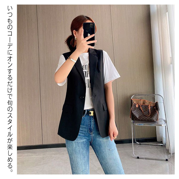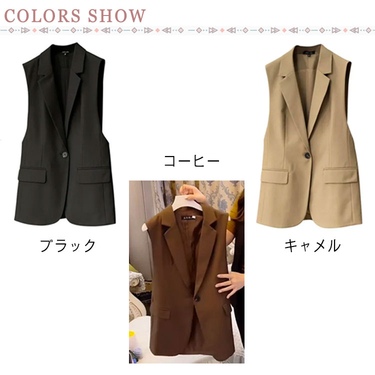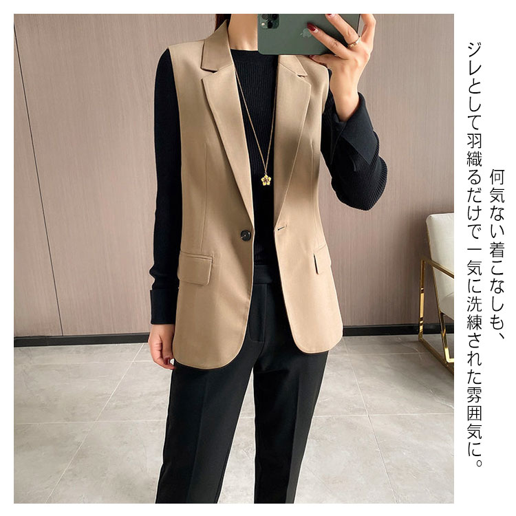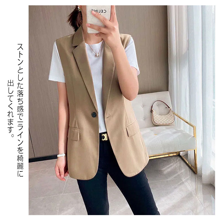 ベスト ジレ レディース シンプル 上品 テーラードベスト ロング丈 秋冬 春夏 無地 おしゃれ キレイめ ブレザーベスト フォーマル ノースリーブ スーツベスト 羽織り 前開き 通勤 黒 カジュアル レイヤード 20代 30代 40代 送料無料