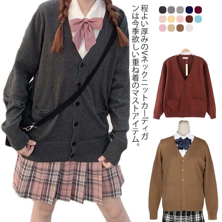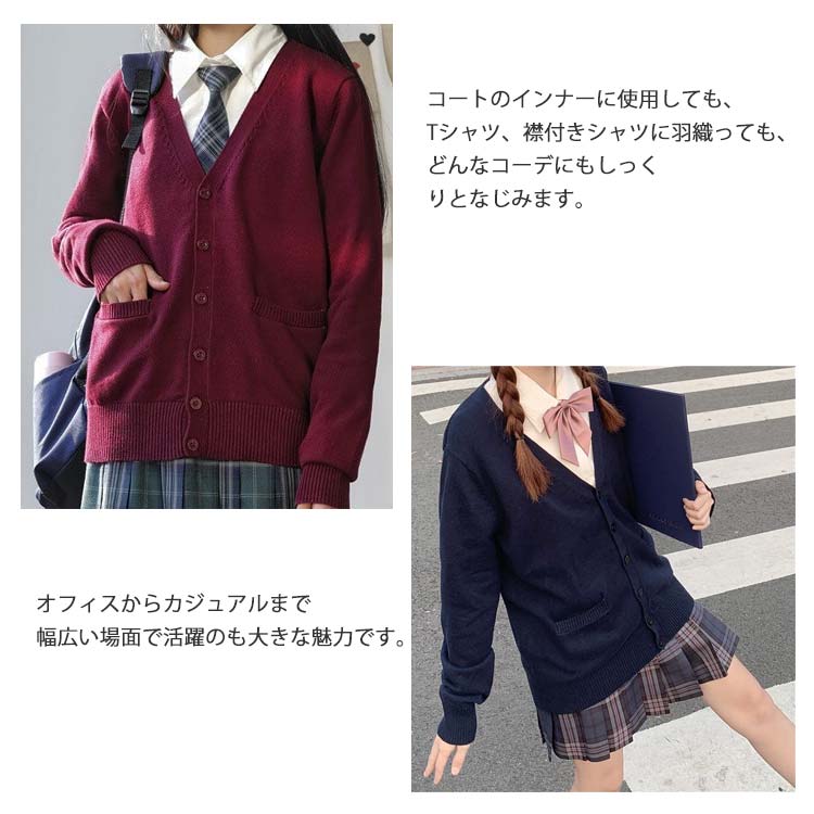 カーディガン Vネック スクールカーディガン 制服 セーター スクールセーター 秋 冬 女子高生 レディース 通学 学生 中学 無地 定番 JK JC シンプル セーター 女子高生制服 学生服 高校生 中学生 JK制服 男女兼用 スーツ 卒業式