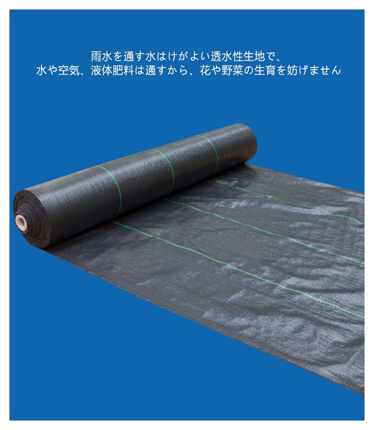 敷くだけの簡単雑草対策品、草や苔が生えてくるのを防ぎます。雨水を通す水はけがよい透水性生地で、水や空気、液体肥料は通すから、花や野菜の生育を妨げません高い遮光性で優れた防草効果、高耐久性。