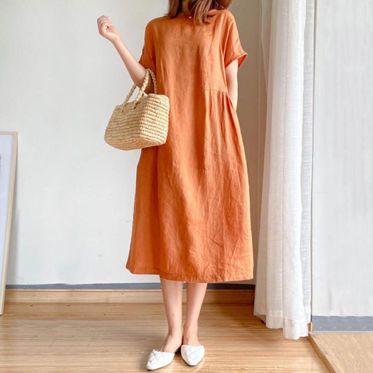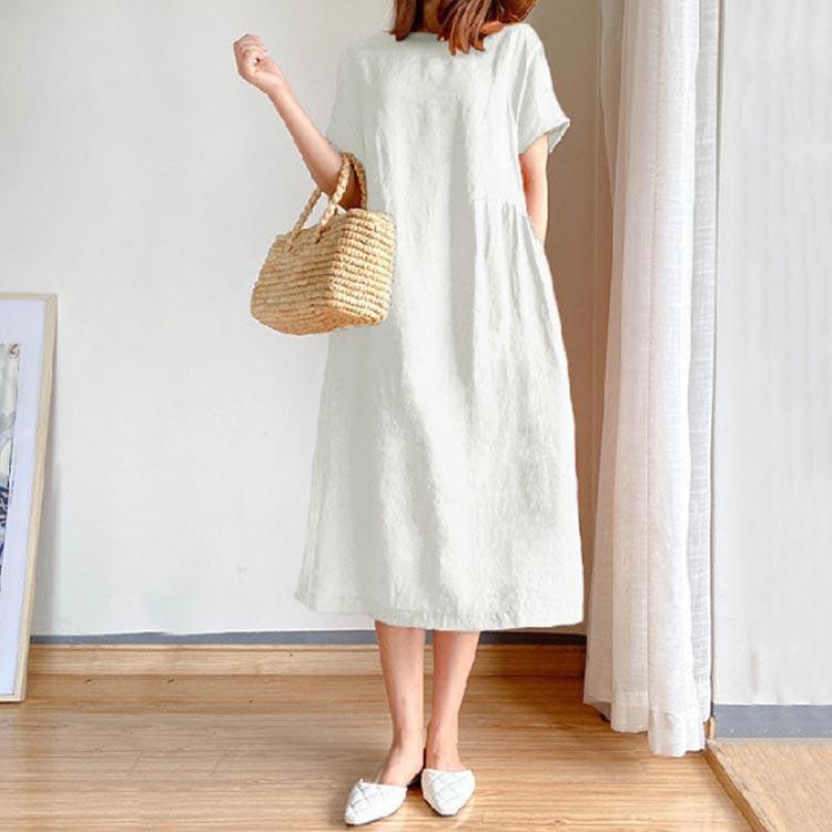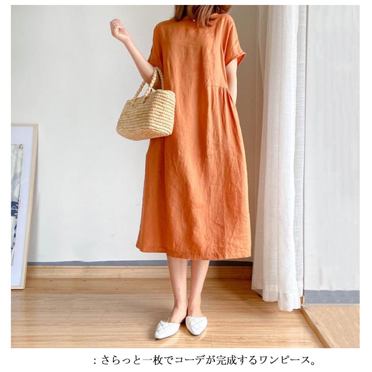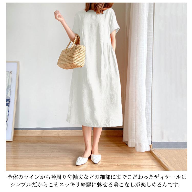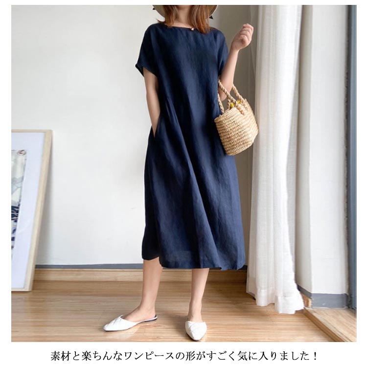 ワンピース レディース ワンピース ナチュラル 半袖 薄手 涼しい おしゃれ 袖あり ミモレ丈 ロング丈 カジュアル 春 夏 春夏 ワンピ ドレス シンプル 森ガール ブラック 黒 無地 20代 0代 40代 50代