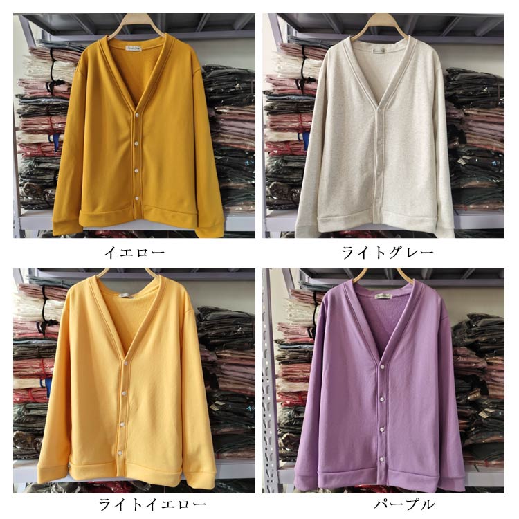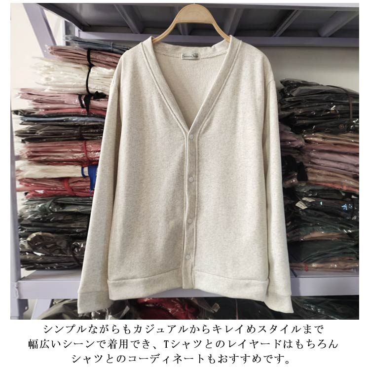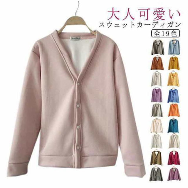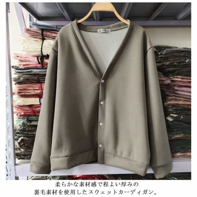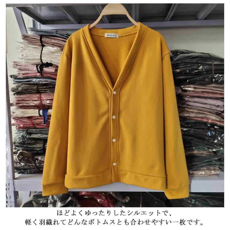 全19色 カーディガン vネック スウェット カーデ レディース 秋 冬 長袖 トップス 羽織り アウター スウェットカーディガン ボタン ゆったり スエットカーディガン 大人 カジュアル 無地 シンプル 30代 40代 50代 60代 ベージュ 白 ホワイト 【送料無料】