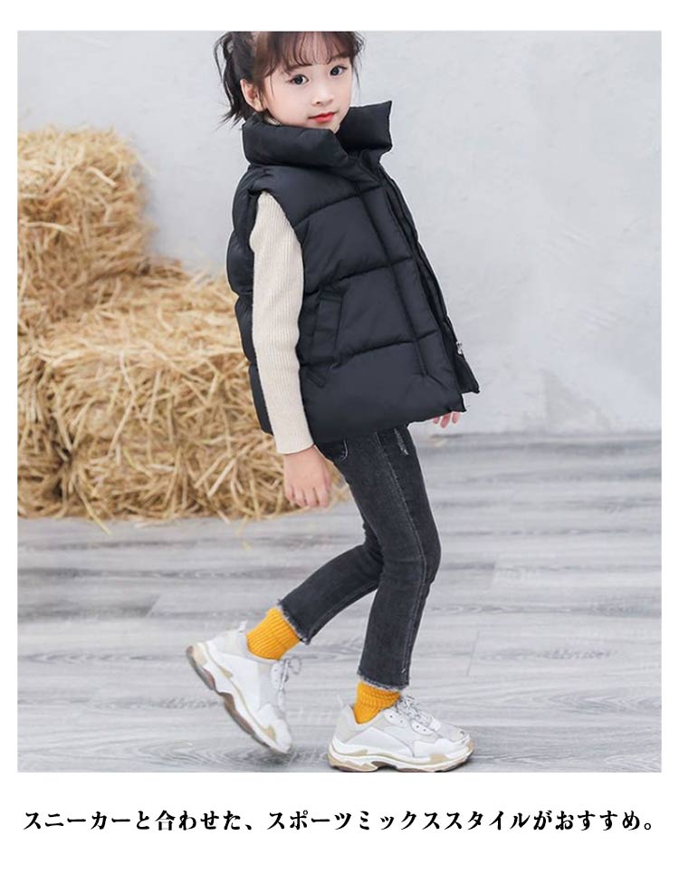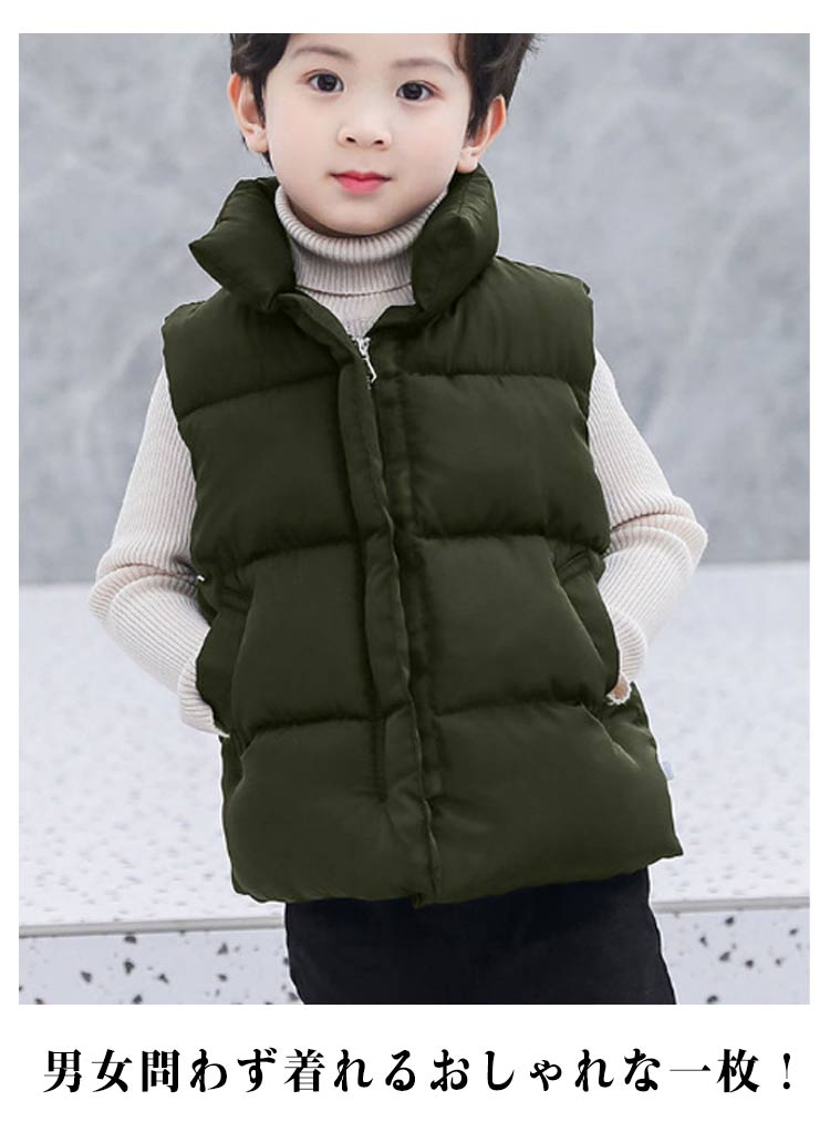 ダウンベスト キッズ スタンドカラー 子供服 中綿 中綿ベスト ベスト 女の子 男の子 アウター ジップアップ 中綿 ダウンジャケット 立襟 軽量 あったか 子供 ポケット付き 保温 防寒対策 暖かい 秋冬 ジュニア 通学 キッズ服
