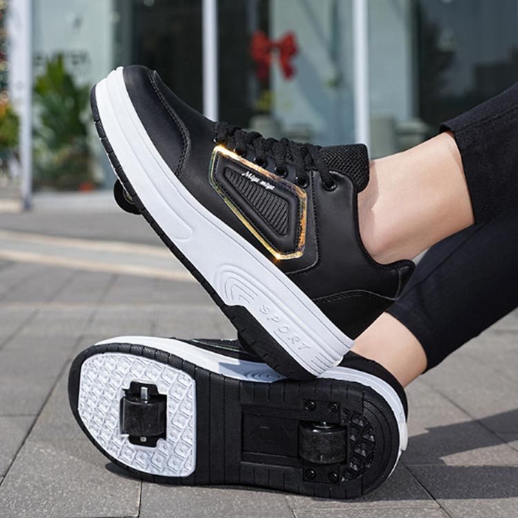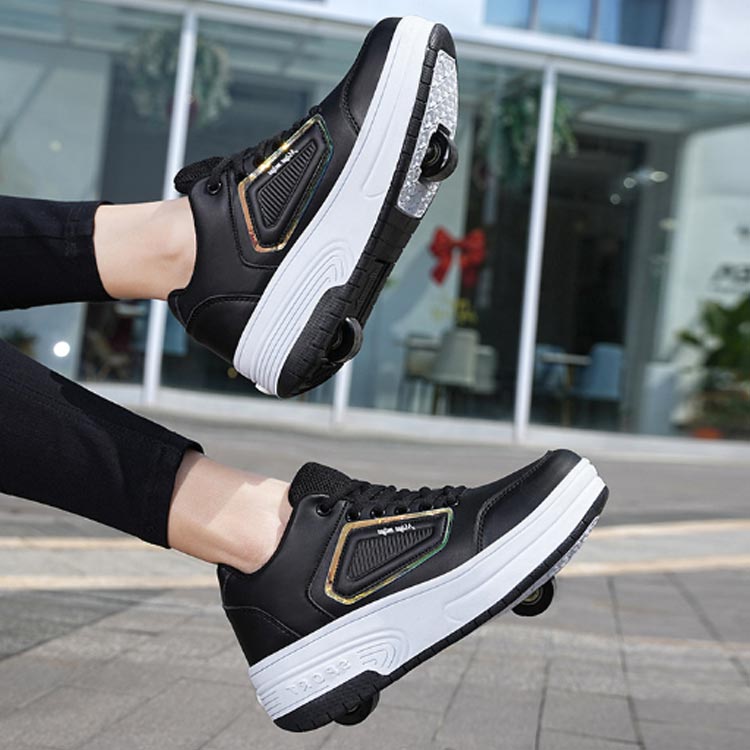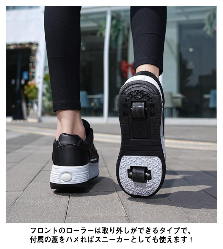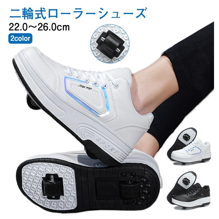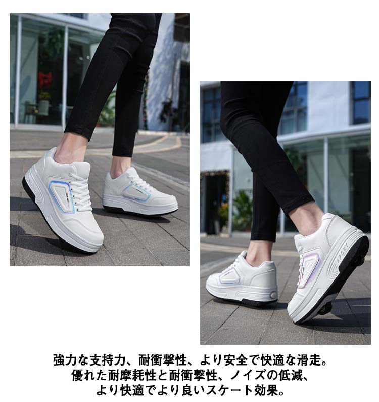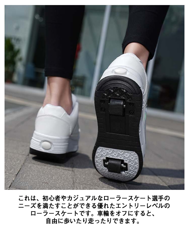 ローラーシューズ 2輪式 キッズ 大人 子供 レディース メンズ ローラースケート 2way 2輪タイプ 女の子 男の子 スニーカー ローラースニーカー 学生 ジュニア おしゃれ 運動靴 スポーツ ギフト 初心者 通気性 カジュアル 黒 白 ブラック ホワイト