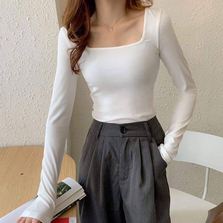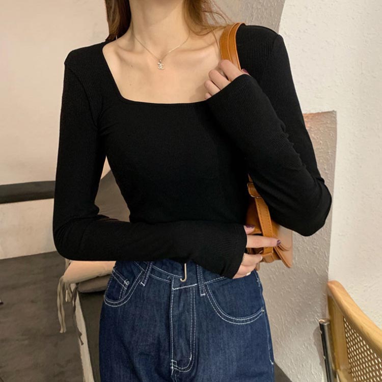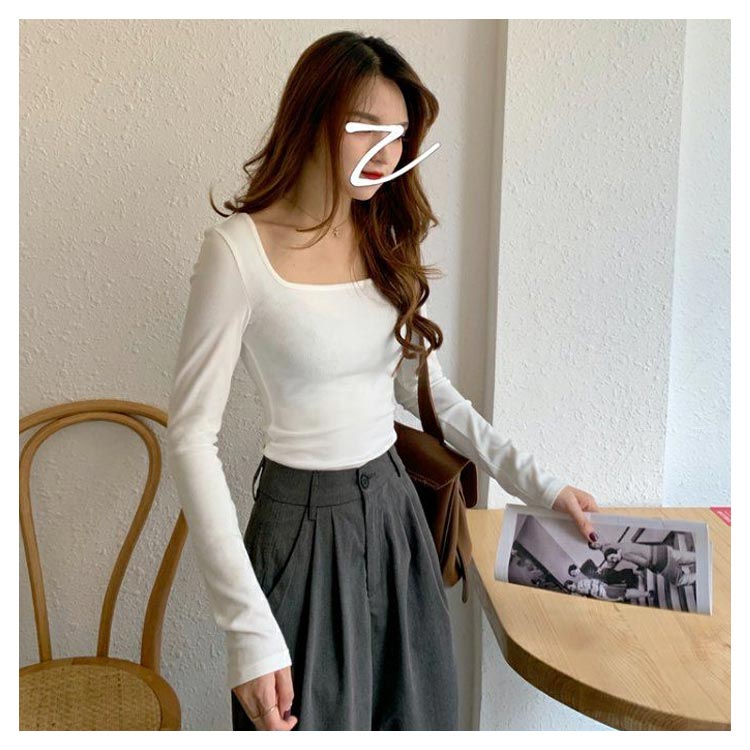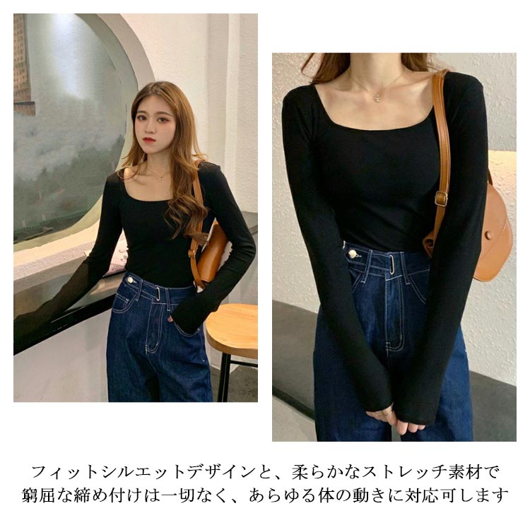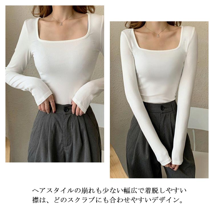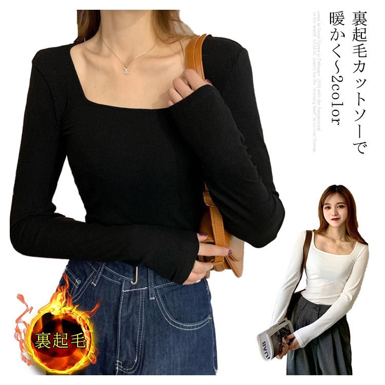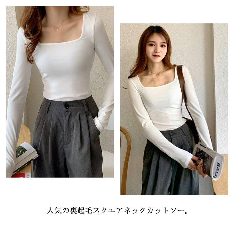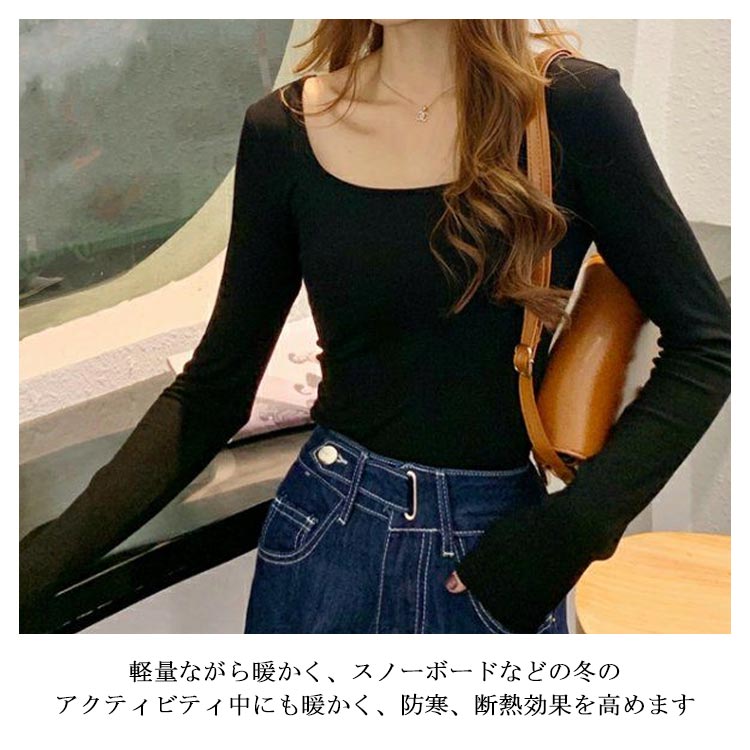 送料無料 裏起毛 レディース トップス ロンt tシャツ インナー スクエアネック 黒 ブラック 白 秋冬 暖かい インナー 長袖 カットソー 極暖