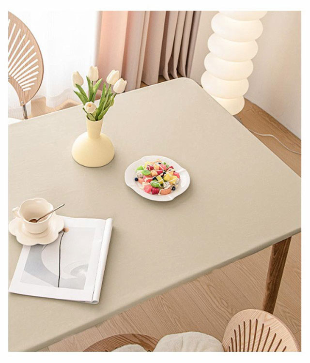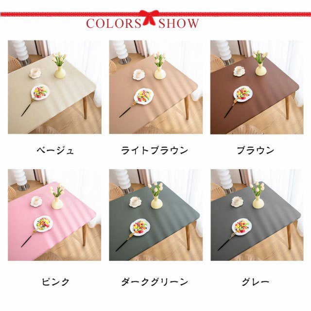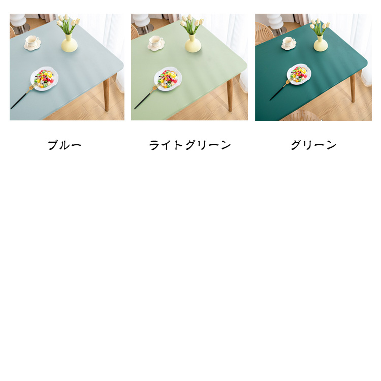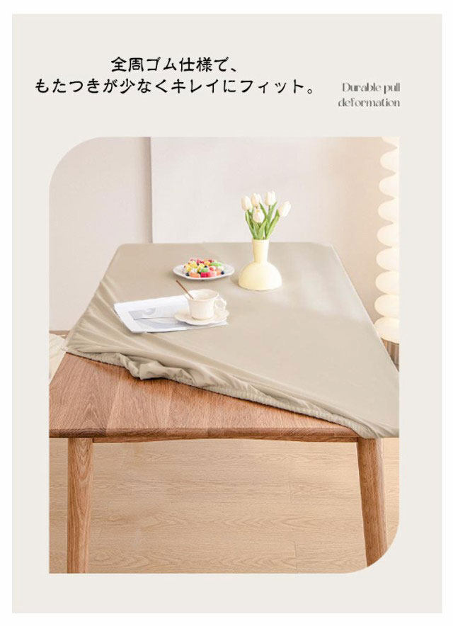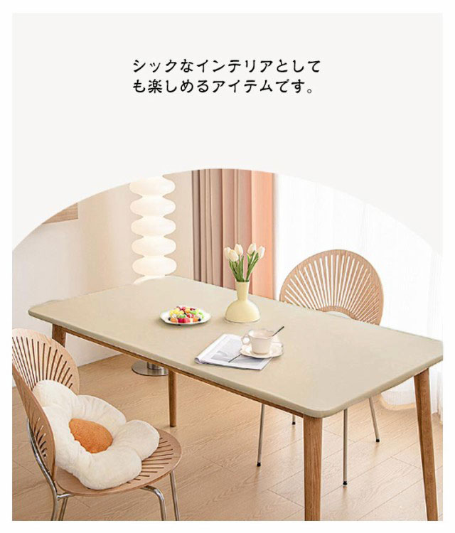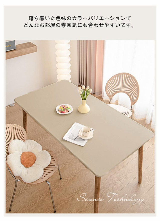 【テーブルクロス】【防水·耐熱·撥油】【5size・9color】柔らかい生地感と肌触りで使いやすいテーブルクロス。フィット性のPUレザー生地を採用し、防水性と耐久性に優れているほか肌触りがいいです。全周ゴム仕様で、もたつきが少なくキレイにフィット。ズレにくく着脱も簡単です。PUレザーは、水をはじく素材です。普段のお手入れはサッとひと拭き。汚れが目立ってきたら、固く絞ったふきんで拭いて陰干ししてください。落ち着いた色味のカラーバリエーションでどんなお部屋の雰囲気にも合わせやすいです。シックなインテリアとしても楽しめるアイテムです。