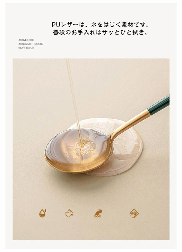 | 【テーブルクロス】【防水·耐熱·撥油】【5size?9color】 柔らかい生地感と肌触りで使いやすいテーブルクロス。 フィット性のPUレザー生地を採用し、防水性と耐久性に優れているほか肌触りがいいです。 全周ゴム仕様で、もたつきが少なくキレイにフィット。 ズレにくく着脱も簡単です。 PUレザーは、水をはじく素材です。普段のお手入れはサッとひと拭き。 汚れが目立ってきたら、固く絞ったふきんで拭いて陰干ししてください。 落ち着いた色味のカラーバリエーションでどんなお部屋の雰囲気にも合わせやすいです。 シックなインテリアとしても楽しめるアイテムです。 | |