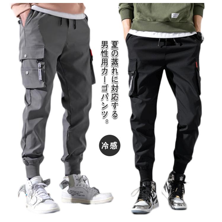 カーゴパンツ メンズ 夏 薄手 接触冷感 ひんやり 涼しい 冷感パンツ ロングパンツ 6ポケット ジョガーパンツ イージーパンツ カジュアルパンツ スリム 作業着 美脚 ウエストゴム カジュアル 無地 おしゃれ 大きいサイズ 送料無料 S-5XL
