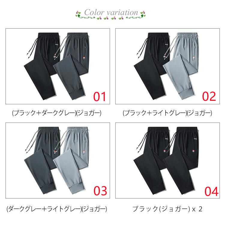 2枚セット ストレッチパンツ メンズ 冷感パンツ ジョガーパンツ ストレートパンツ アイスシルクパンツ 涼しい 接触冷感 パンツ ひんやり チノパン 吸水速乾 超伸縮 ロングパンツ 涼感 無地 軽量 薄手 通気 ゴルフパンツ ゆったり 大きいサイズ イージーパンツ 送料無料