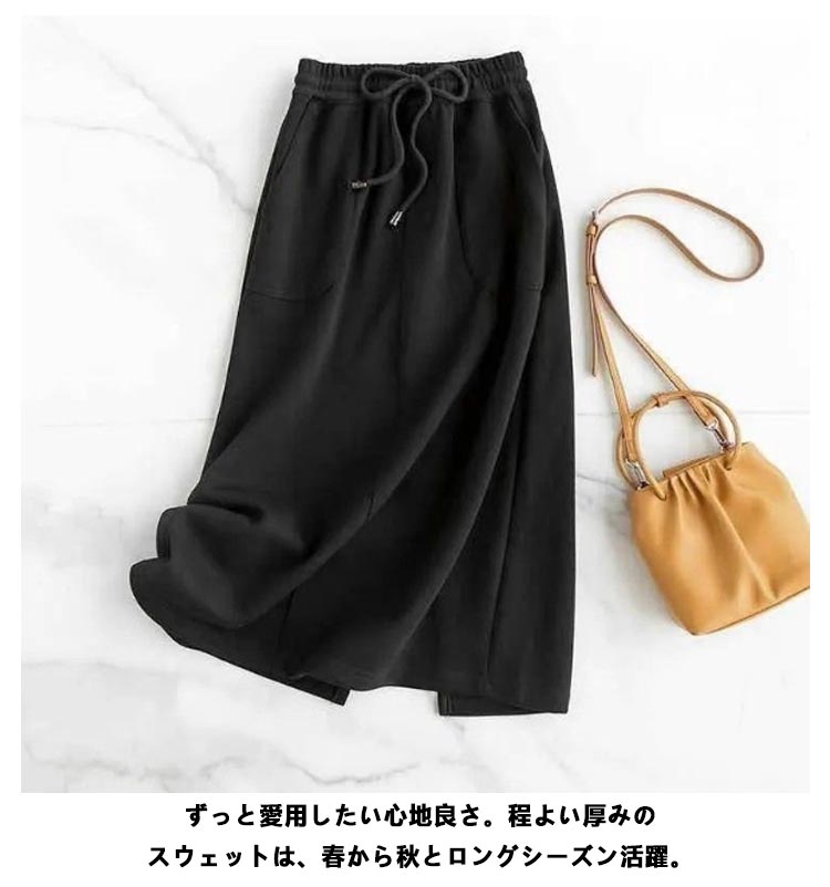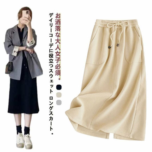 スウェットスカート スカート レディース ロングスカート 春 秋 冬 ロング ミモレ丈 ミドル丈 膝下 スリット入り スウェット ボトムス 体型カバー きれいめ カジュアル aライン フレア スカート ポケット付 ウエストゴム 大きいサイズ 無地 送料無料