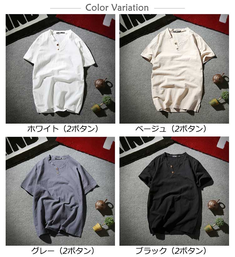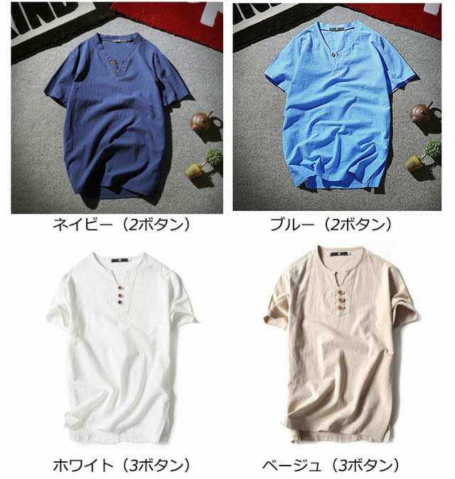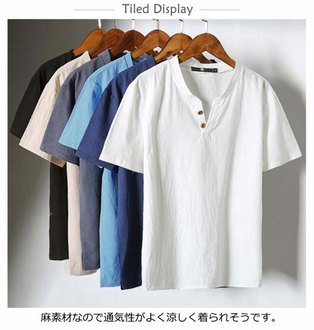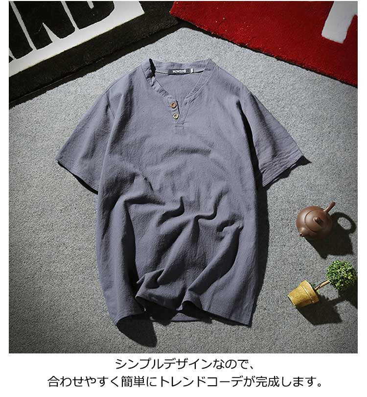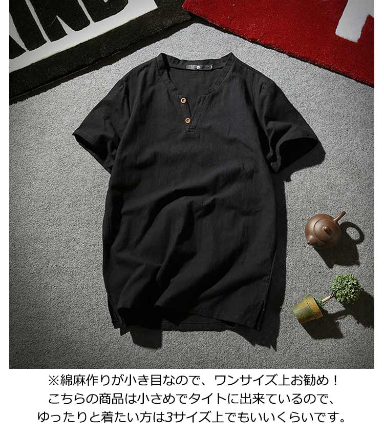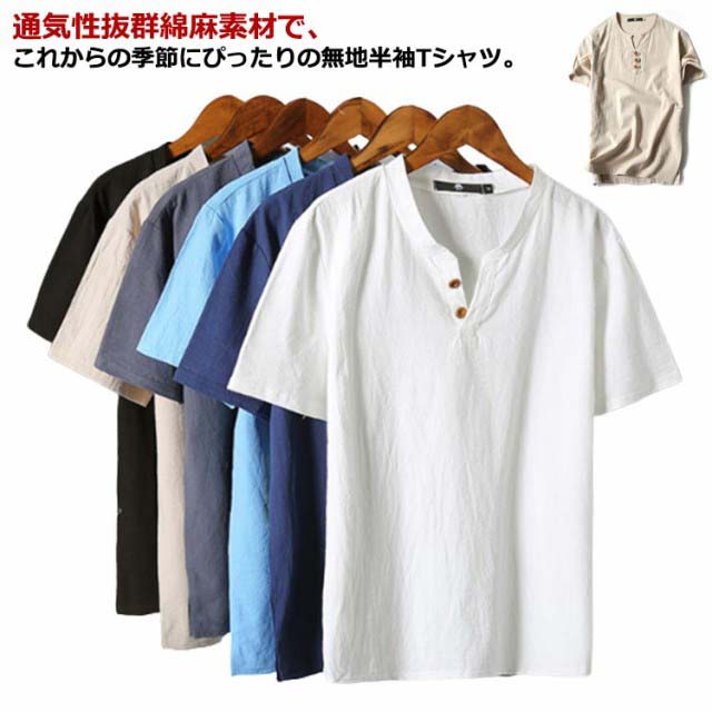Tシャツ メンズ 半袖シャツ 綿麻シャツ リネンシャツ ヘンリーネック 麻 Tシャツ 綿麻 おしゃれ トップス Vネック ボタン付き ティーシャツ リネンTシャツ 夏服 夏物 父の日 黒 白 無地 スポーツ カジュアル 大きいサイズ ルームウェア 部屋着 父の日 M-5XL