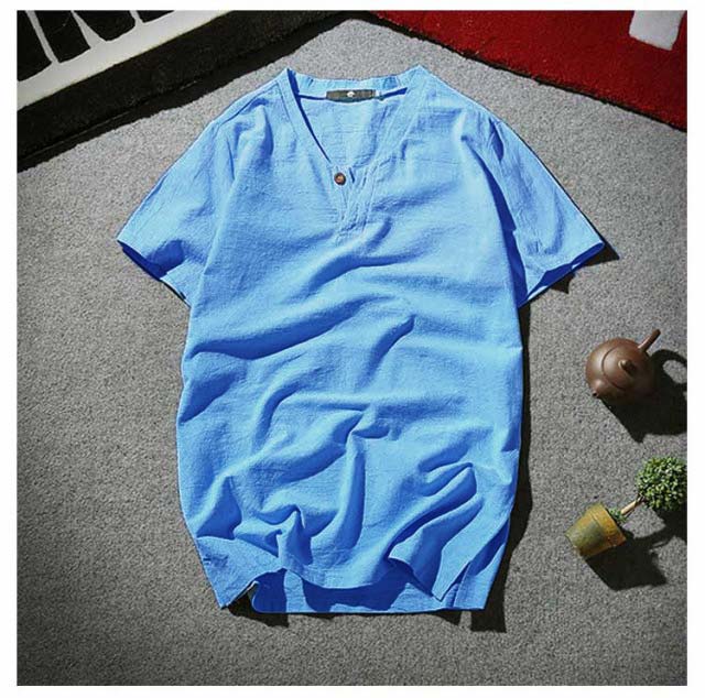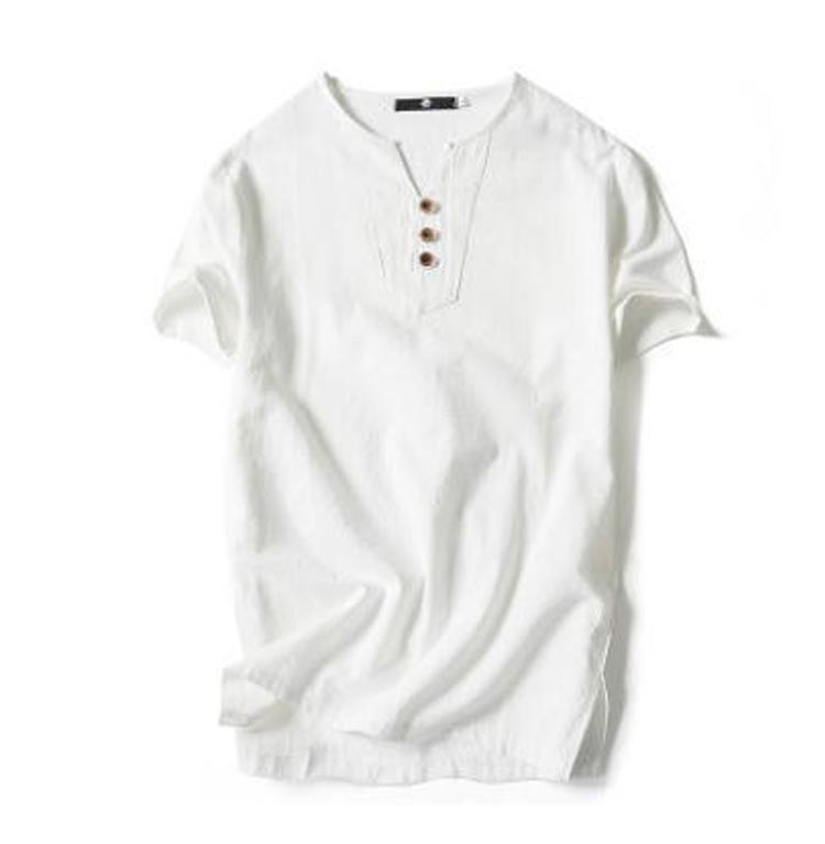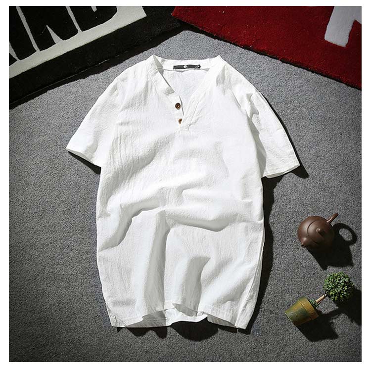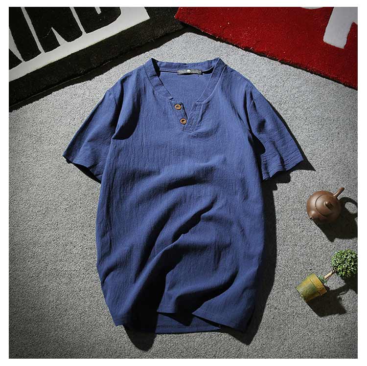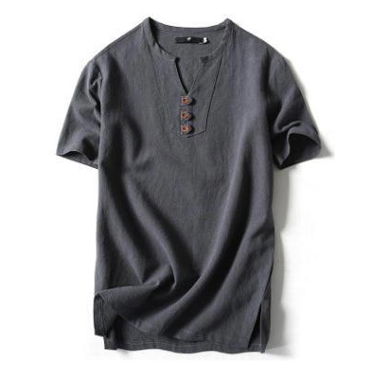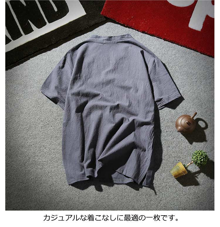 Tシャツ メンズ 半袖シャツ 綿麻シャツ リネンシャツ ヘンリーネック 麻 Tシャツ 綿麻 おしゃれ トップス Vネック ボタン付き ティーシャツ リネンTシャツ 夏服 夏物 父の日 黒 白 無地 スポーツ カジュアル 大きいサイズ ルームウェア 部屋着 父の日 M-5XL