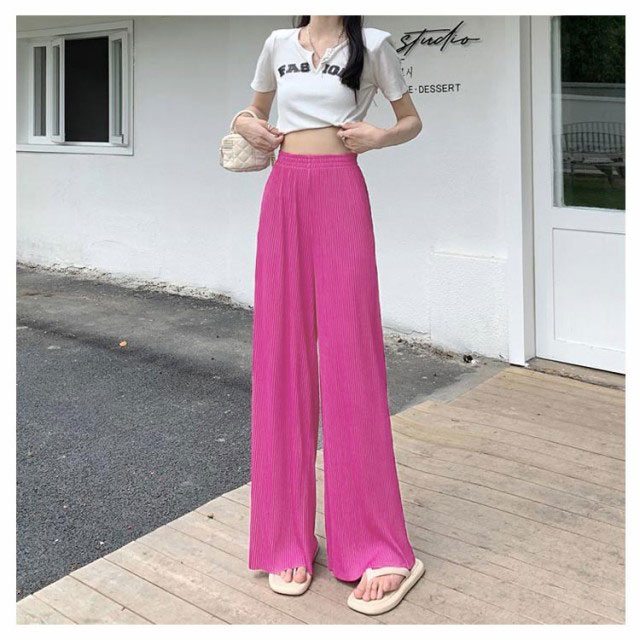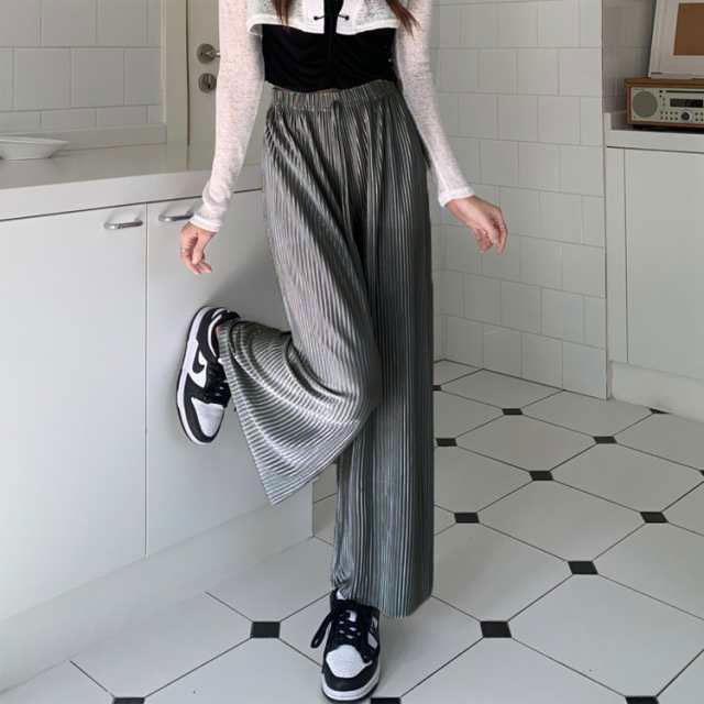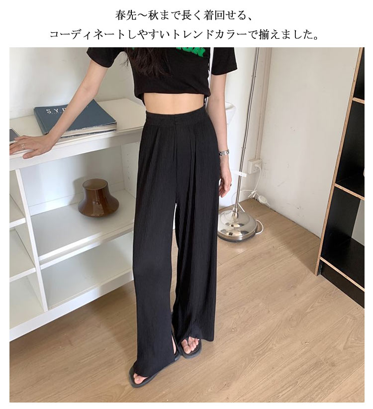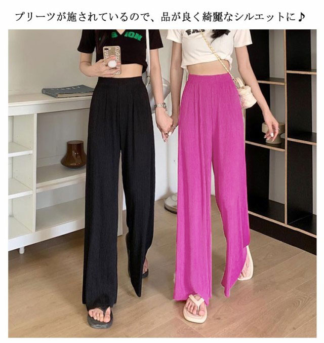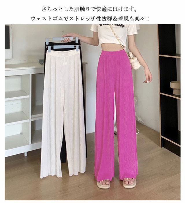 送料無料 切れるパンツ プリーツパンツ シフォン ワイドパンツ プリーツ ウェストゴム ロング丈 パンツ ガウチョパンツ ボトムス プリーツパンツ リブパンツ イージーパンツ 縦ライン セルフカット 裾カットOK 高見え 春 夏